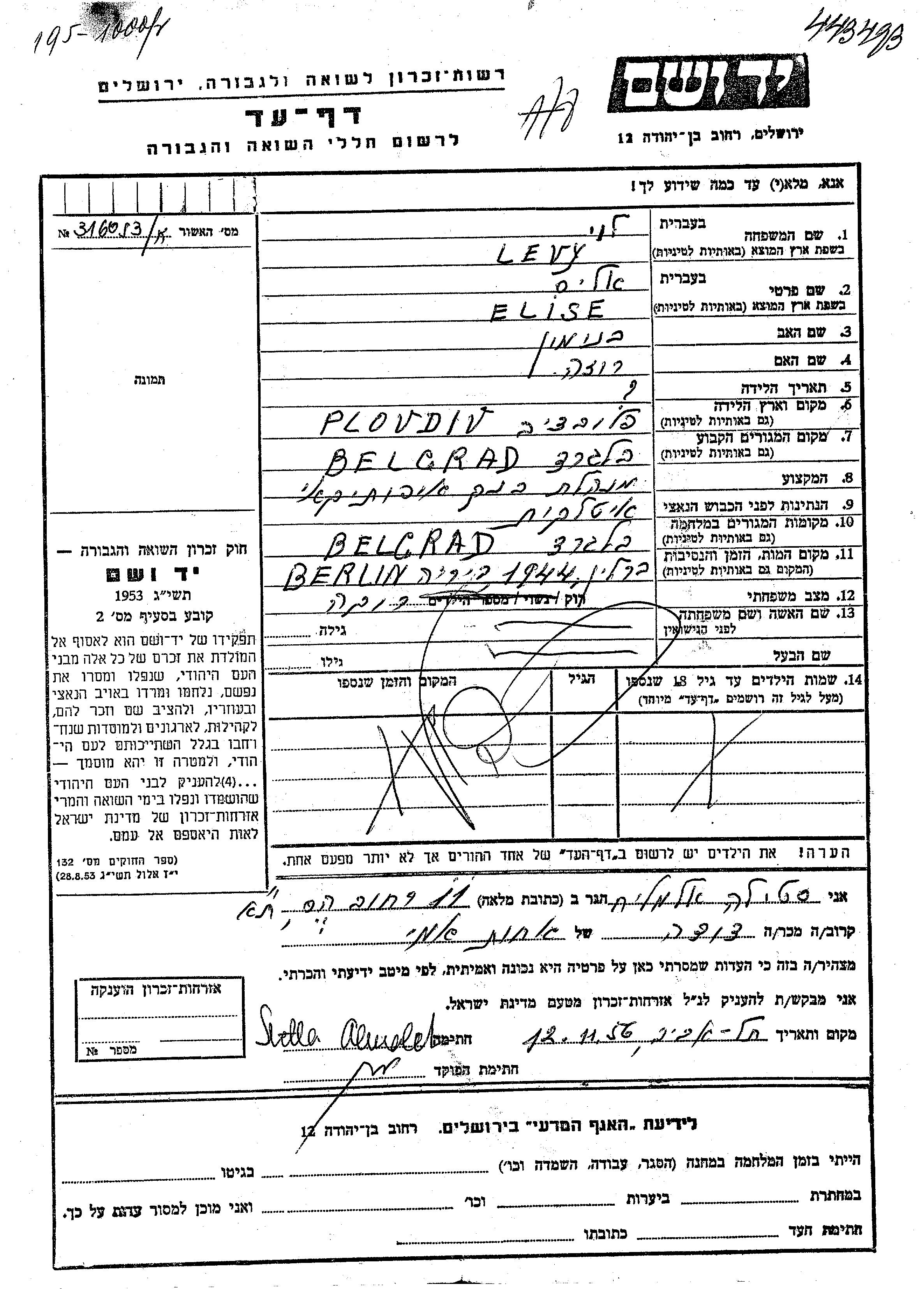 Леви | Элизе Элис | Белград, Югославия | Лист свидетельских показаний |