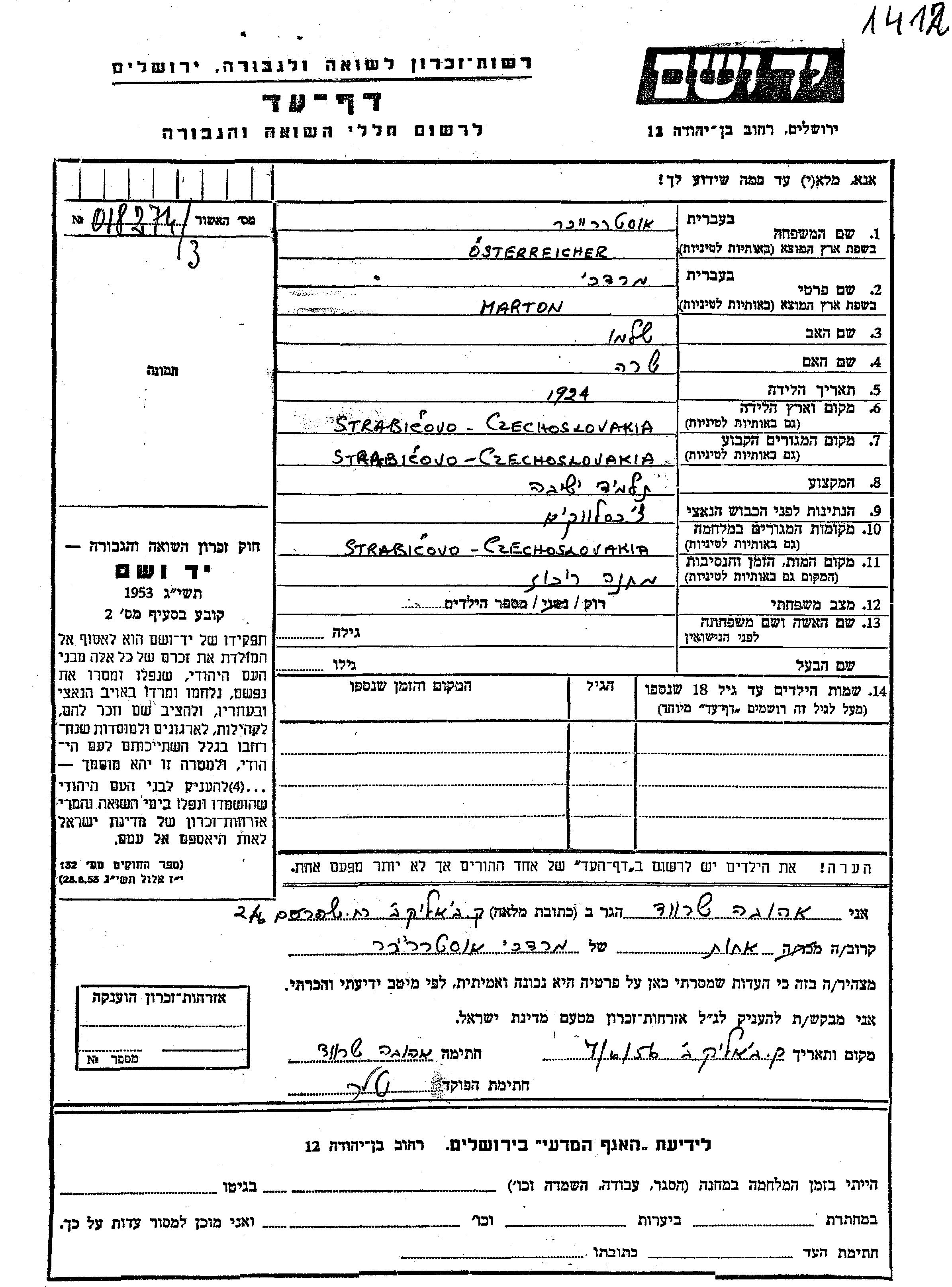 Остеррайхер | Мордехай Мартон | 1924 | Страбичово, Чехословакия | Лист свидетельских показаний |