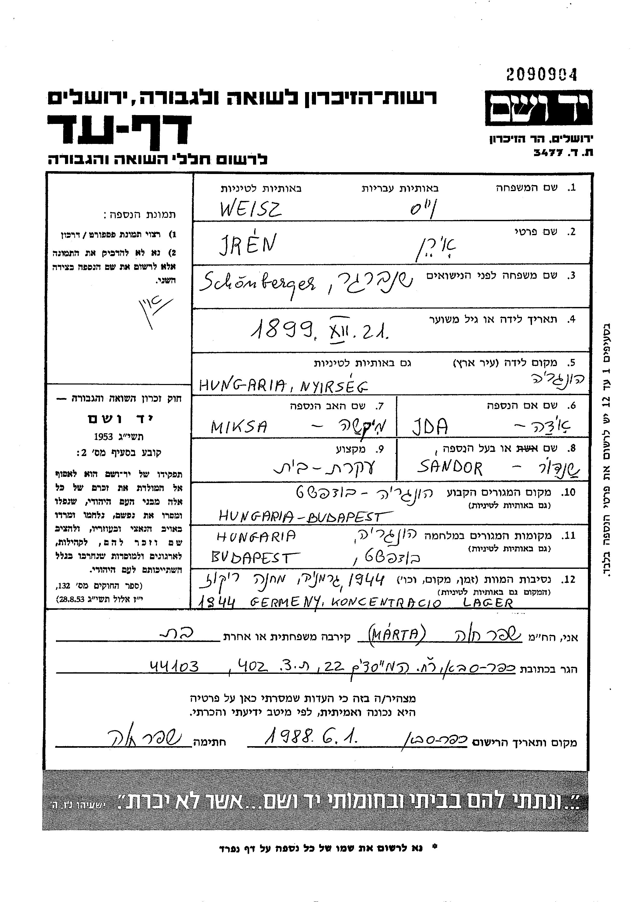 Вейс | Ирен | 1899 | Будапешт, Венгрия | Лист свидетельских показаний |