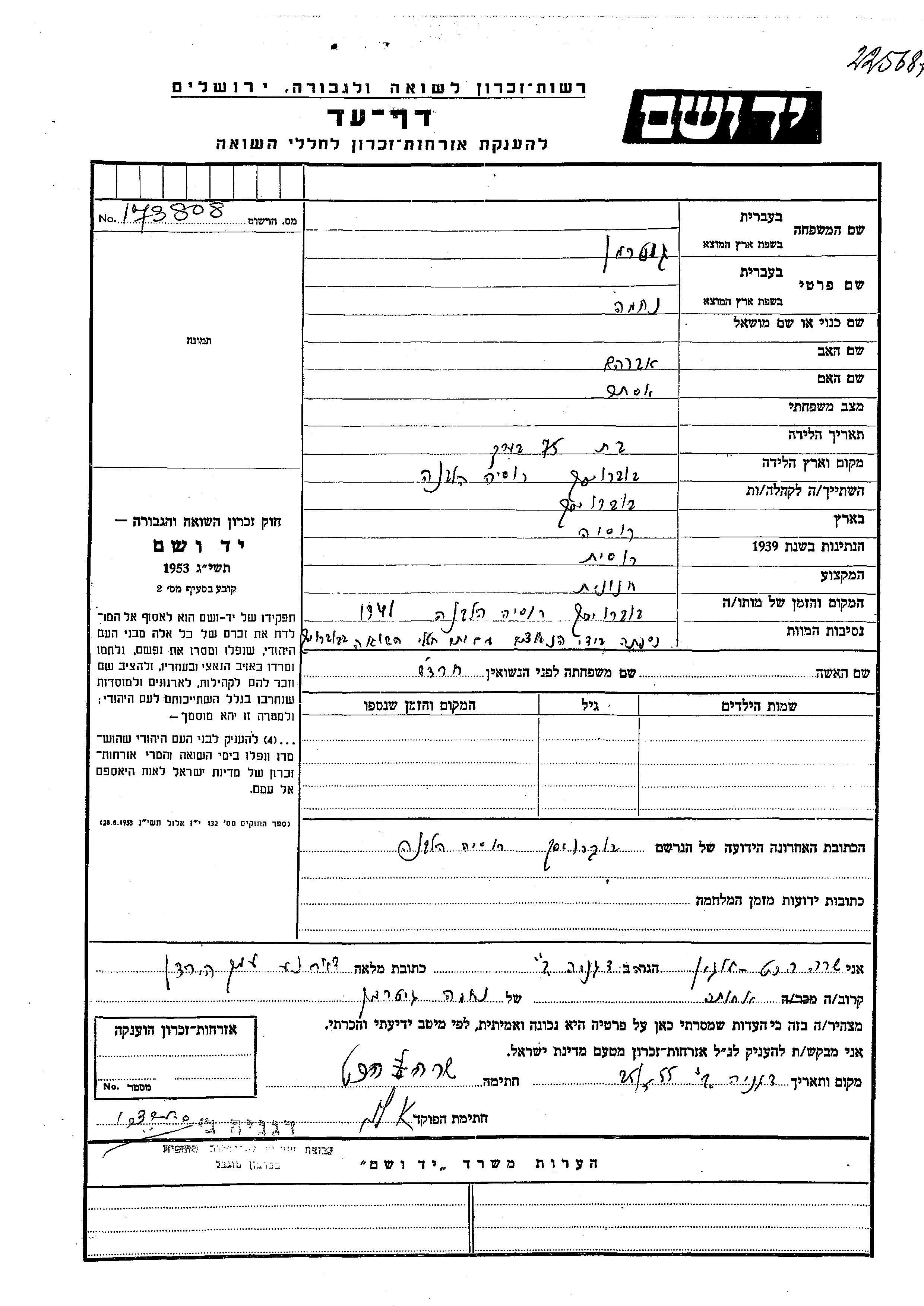 Яд Вашем - Листы свидетельских показаний Мемориального фонда