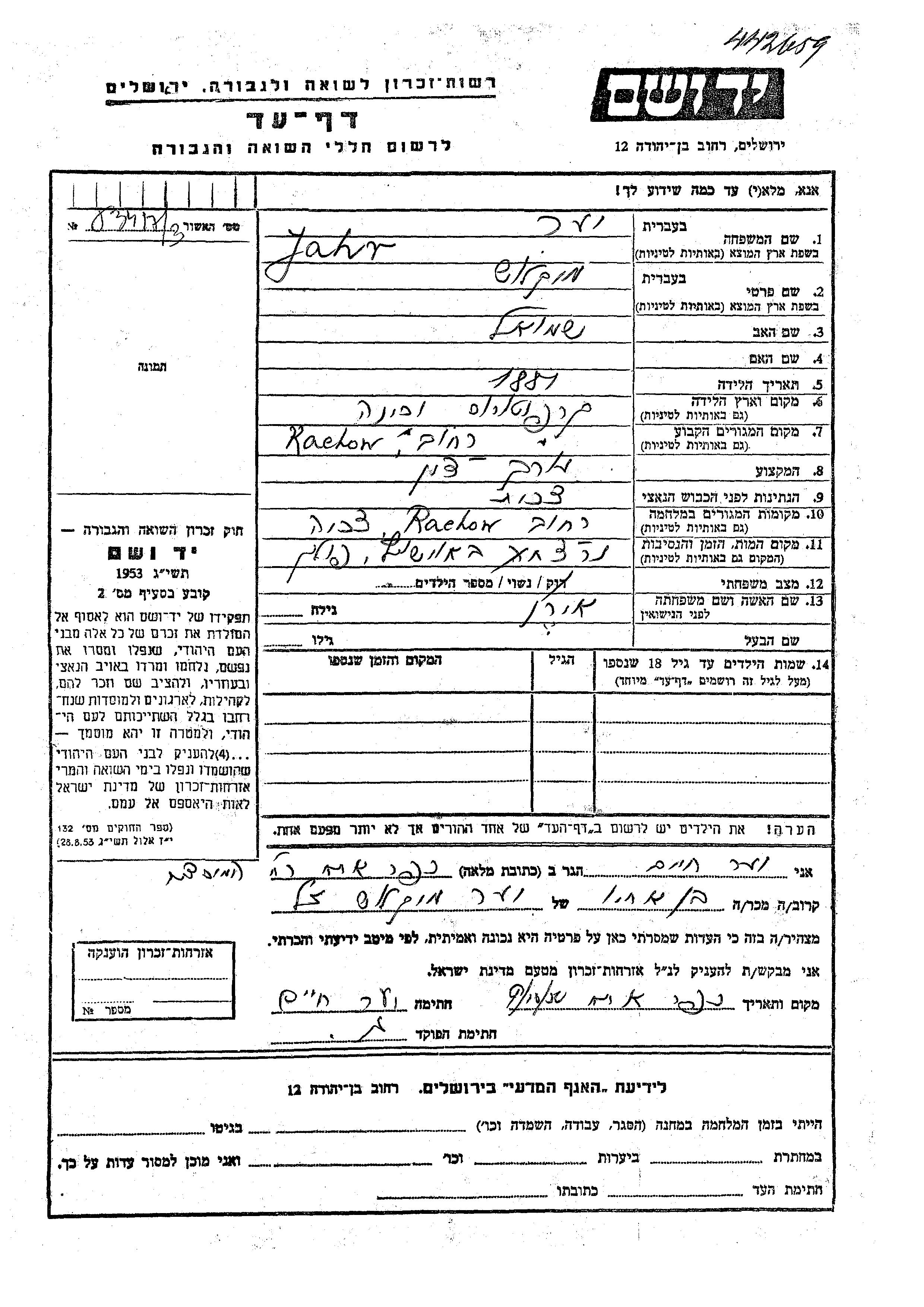 Яр | Миклош | 1881 | Рахов, Чехословакия | Лист свидетельских показаний |