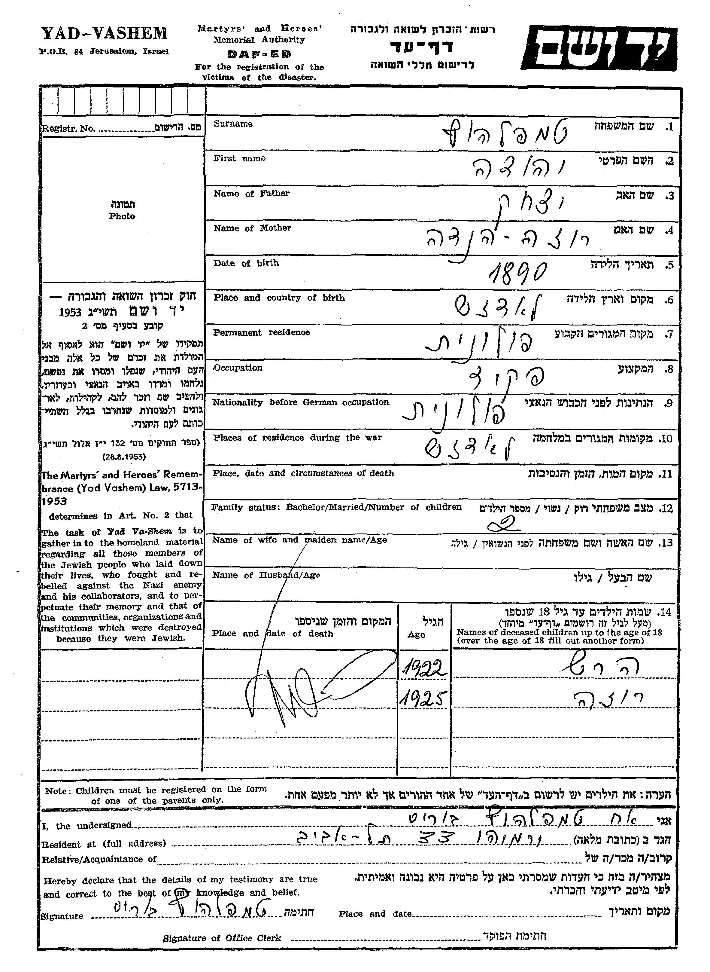 Яд Вашем - Листы свидетельских показаний Мемориального фонда