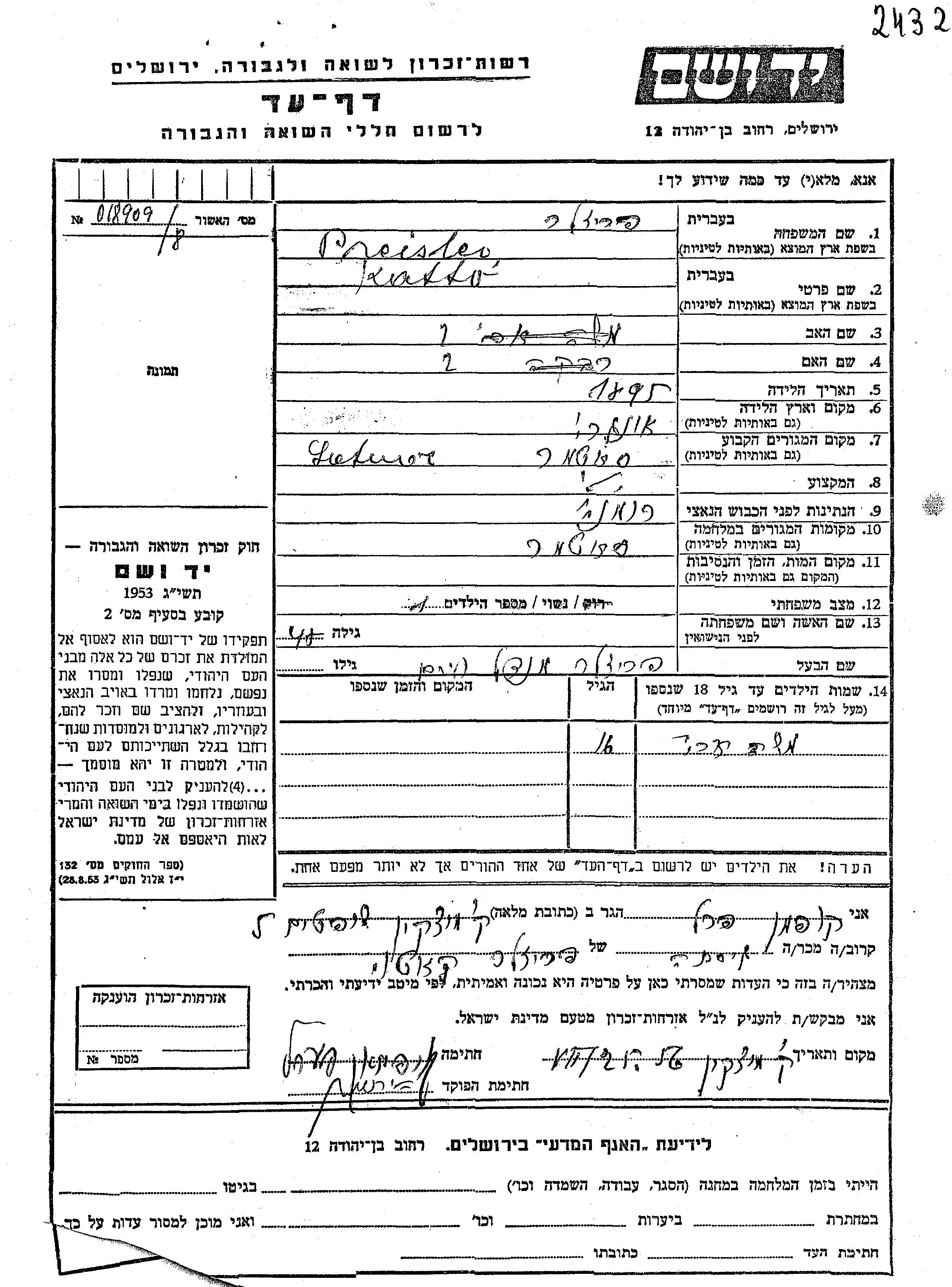Поиск подателя Листа свидетельских показаний. Поиск по любому имени, включая уменьшительное или прозвище