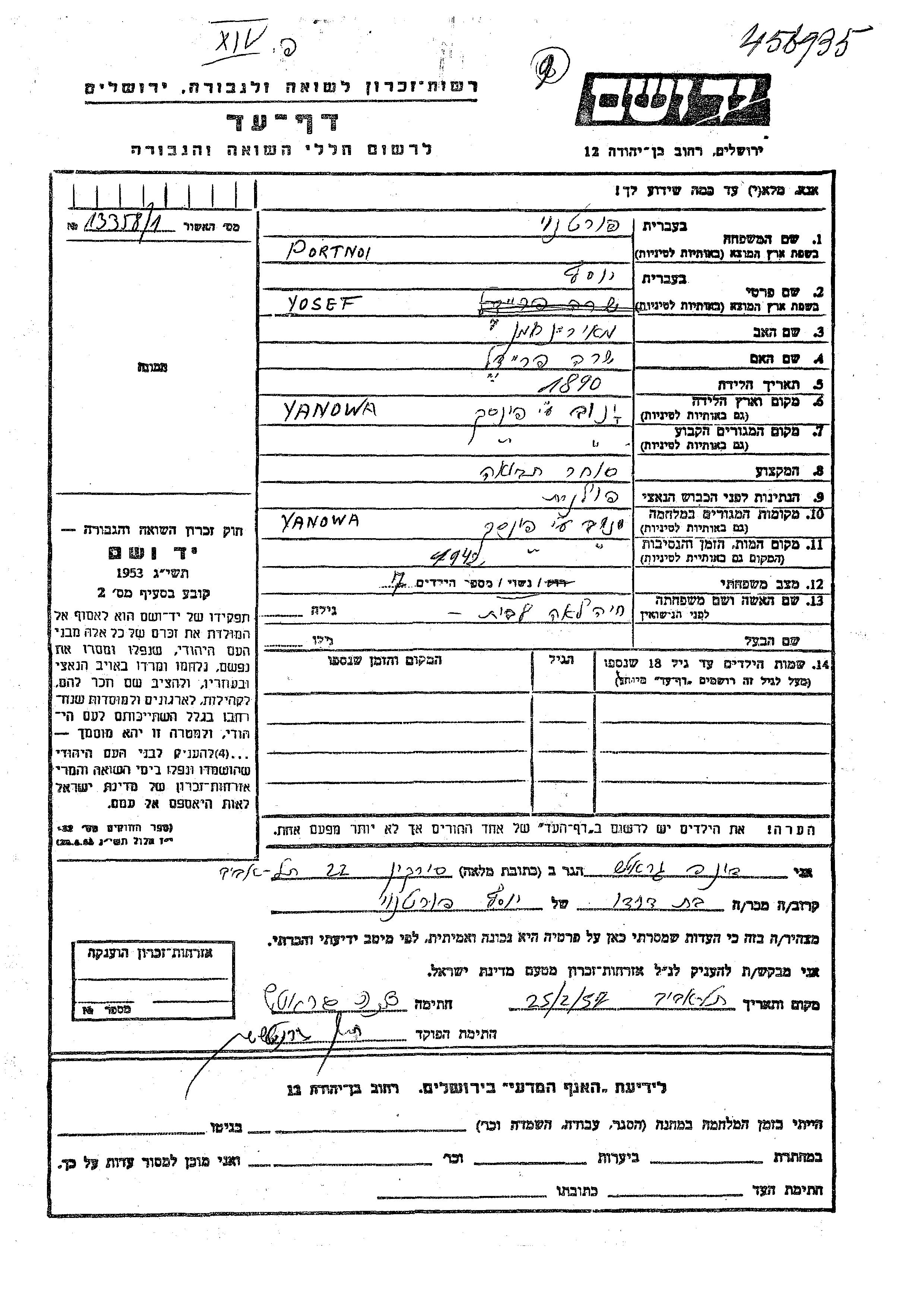 Иосеф Портной, место рождения: Янув, Польша. Место жительства до войны: Янув, Польша.