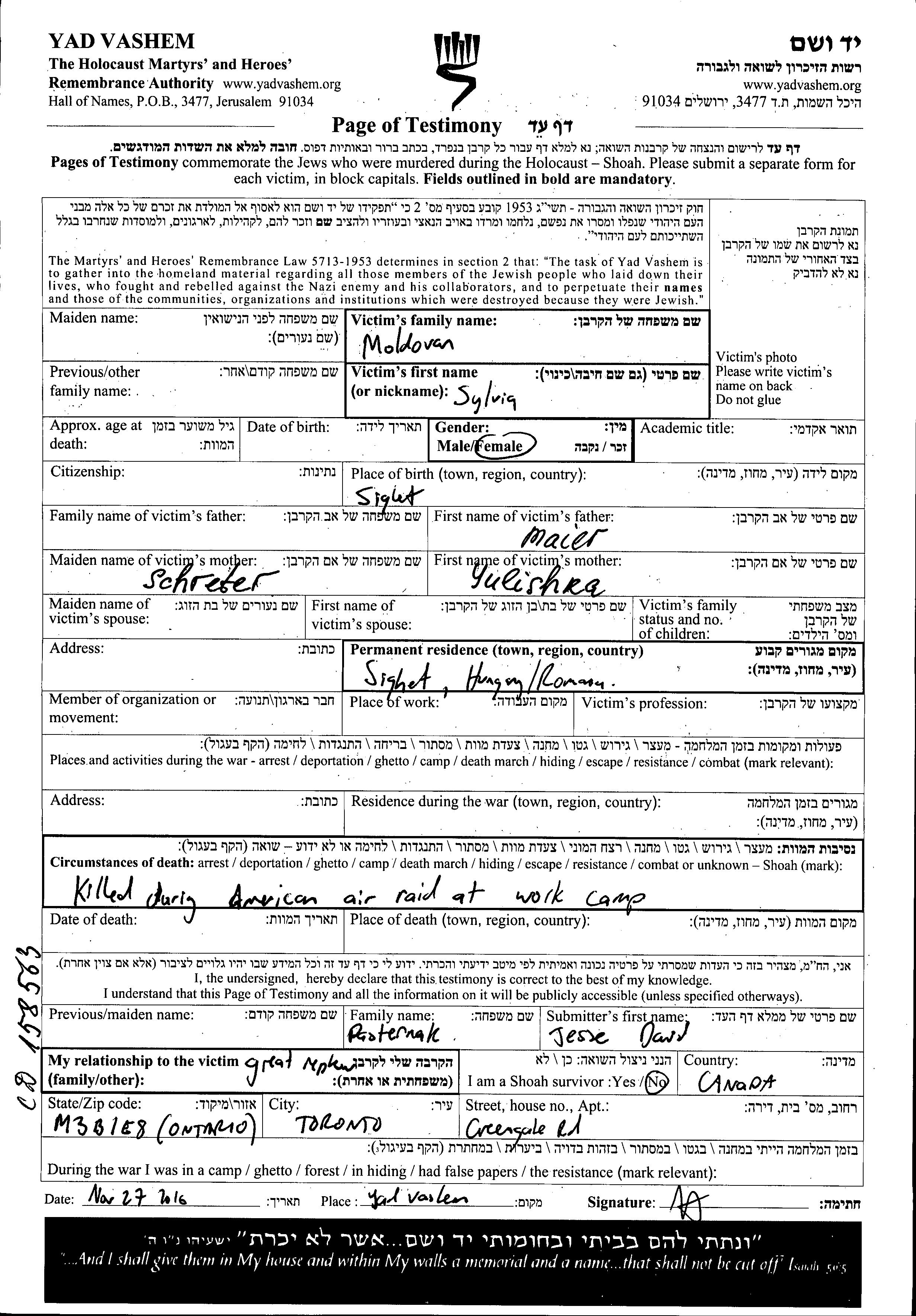 Яд Вашем - Листы свидетельских показаний Мемориального фонда