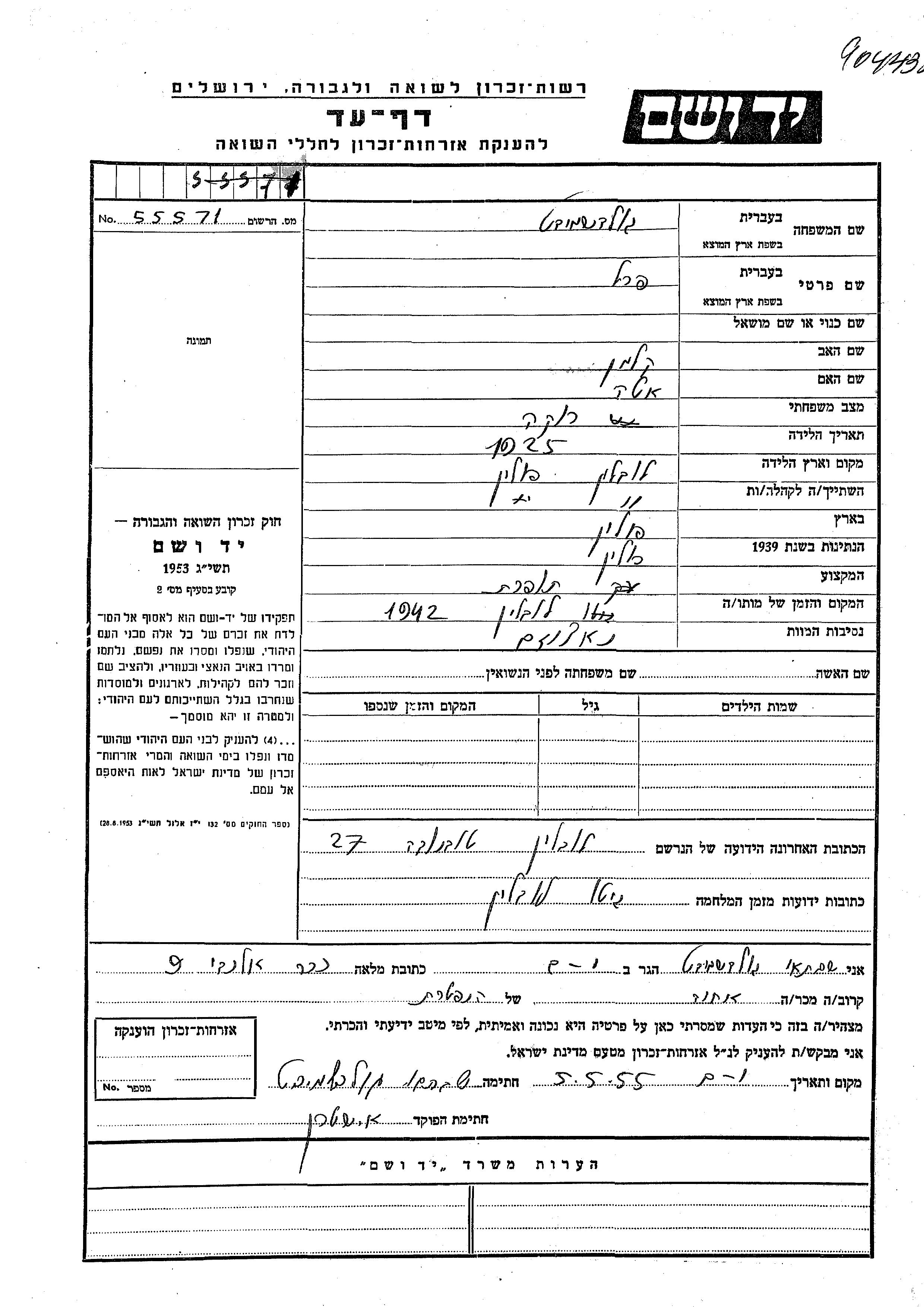 | Гольдшмидт | Перел | 1925 | Люблин, Польша | Лист свидетельских показаний |