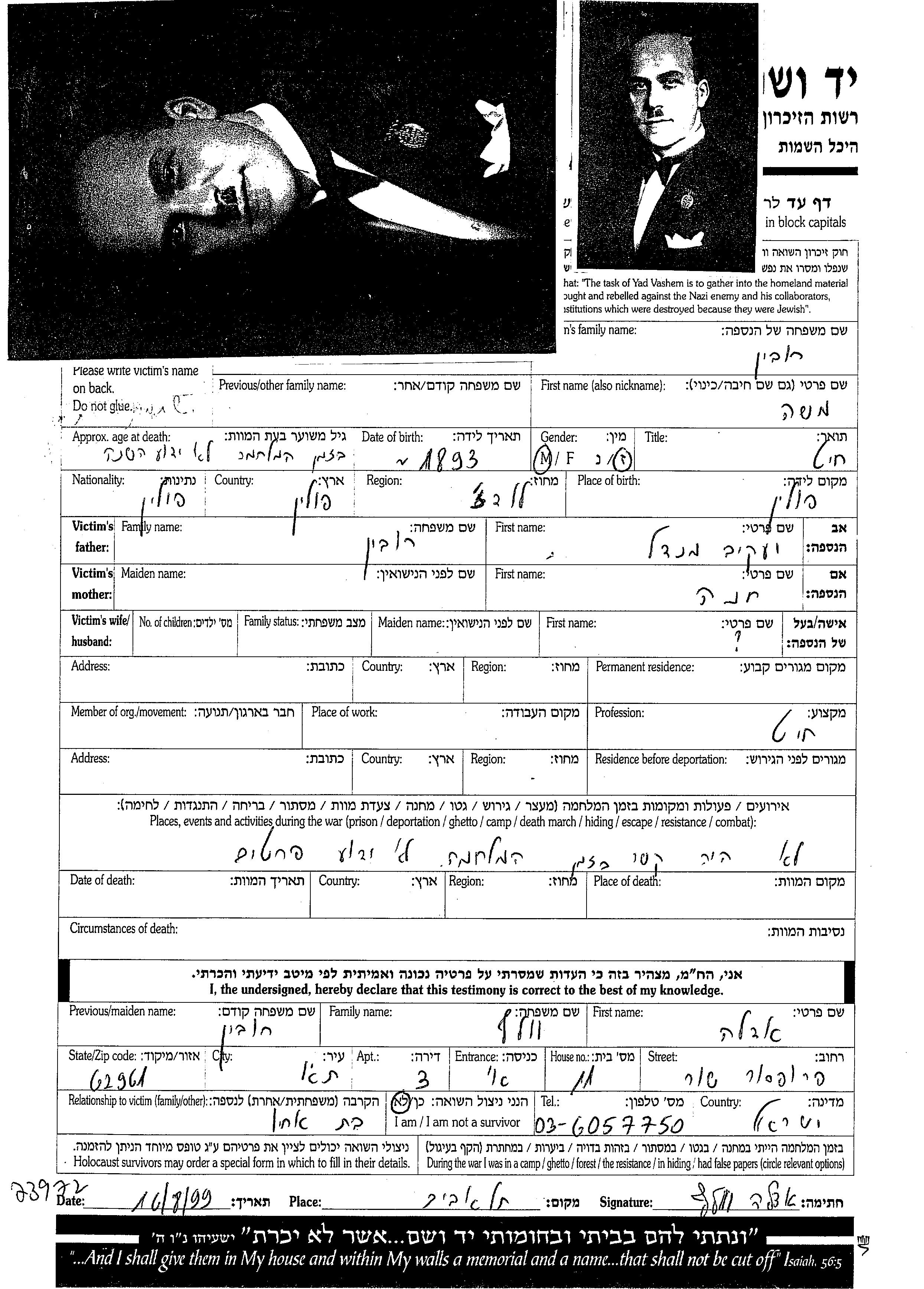 | Рубин | Моше | Лодзь, Польша | Лист свидетельских показаний | |