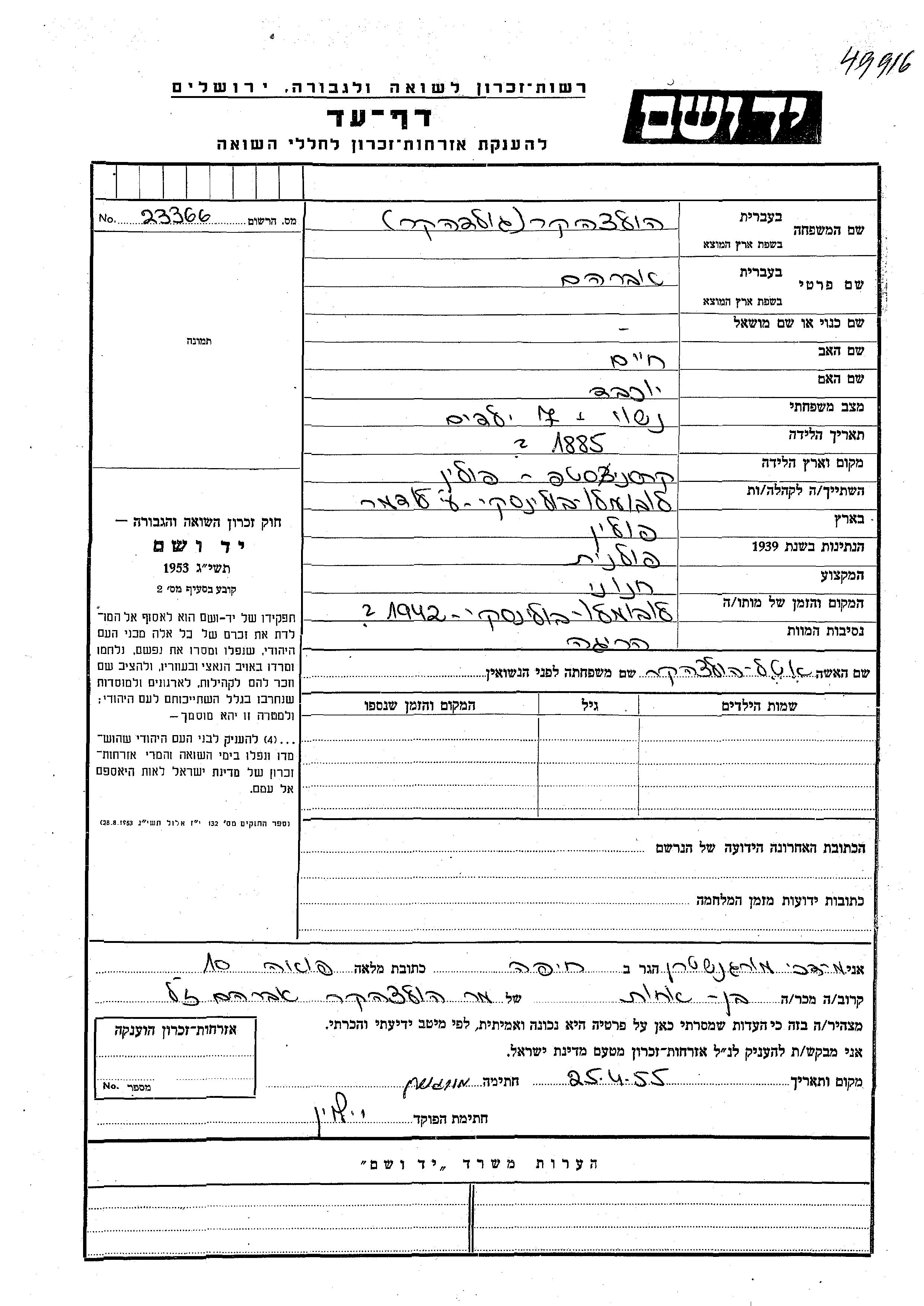 Яд Вашем - Листы свидетельских показаний Мемориального фонда