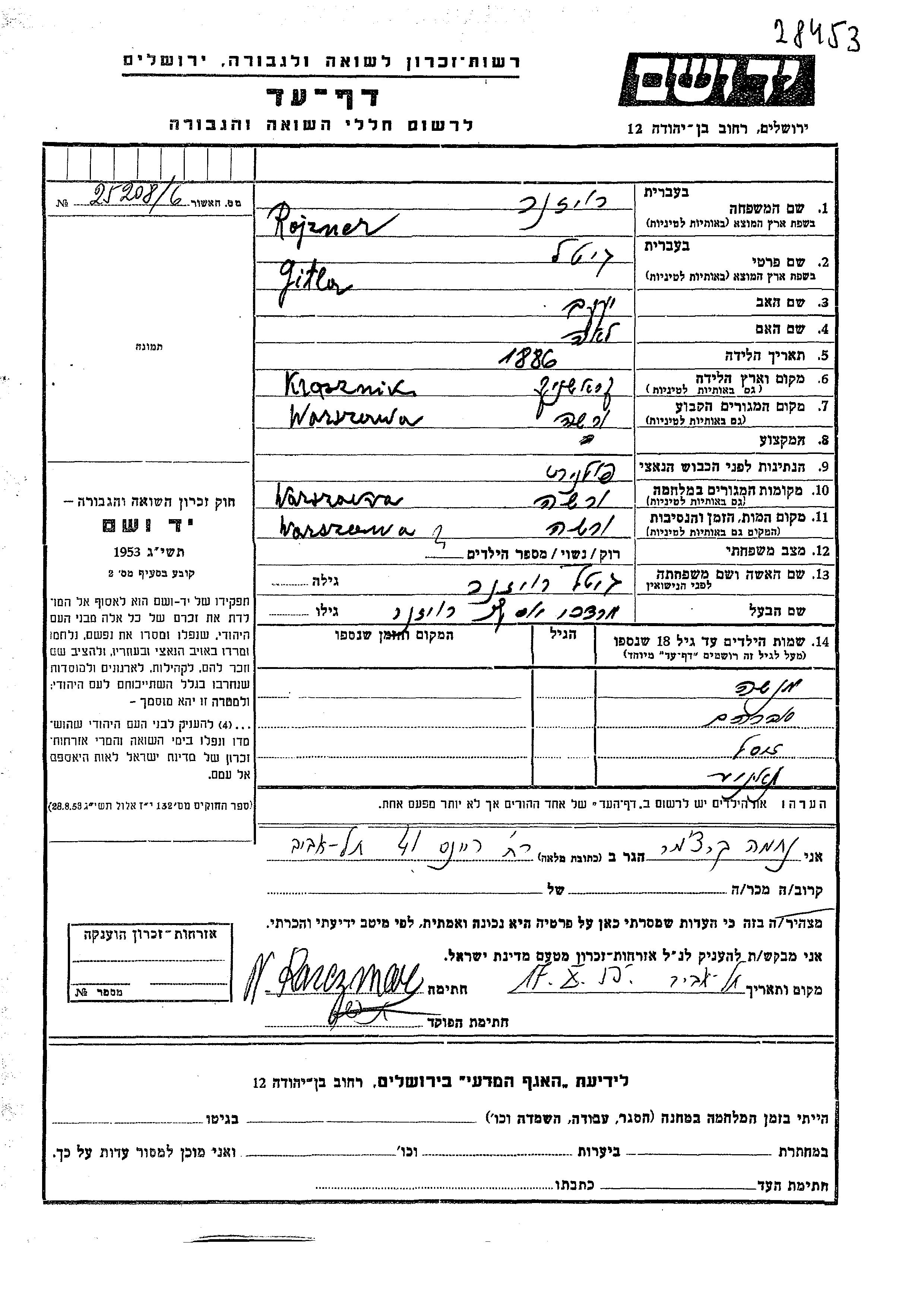 Ройзнер Зисл Варшава, Польша Лист свидетельских показаний