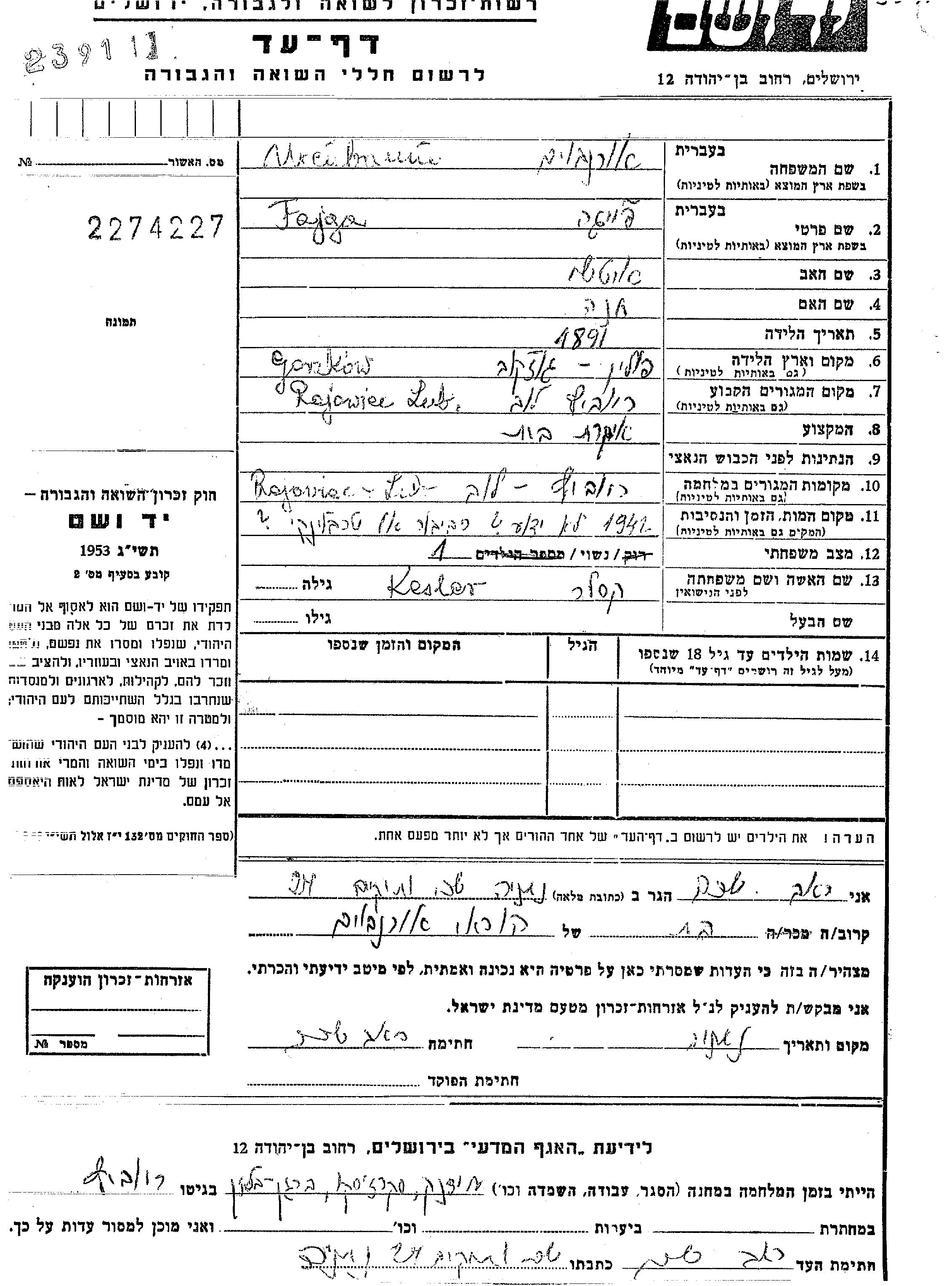 Яд Вашем - Листы свидетельских показаний Мемориального фонда