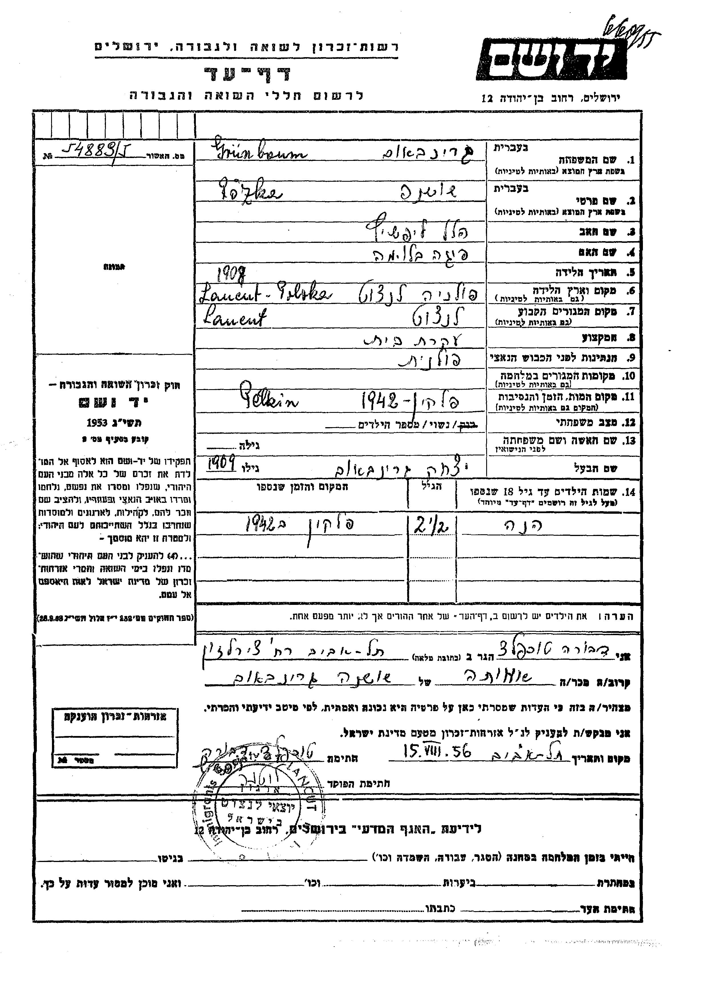 Гринбаум | Розка Шошана | 1908 | Ланьцут, Польша | Лист свидетельских показаний |