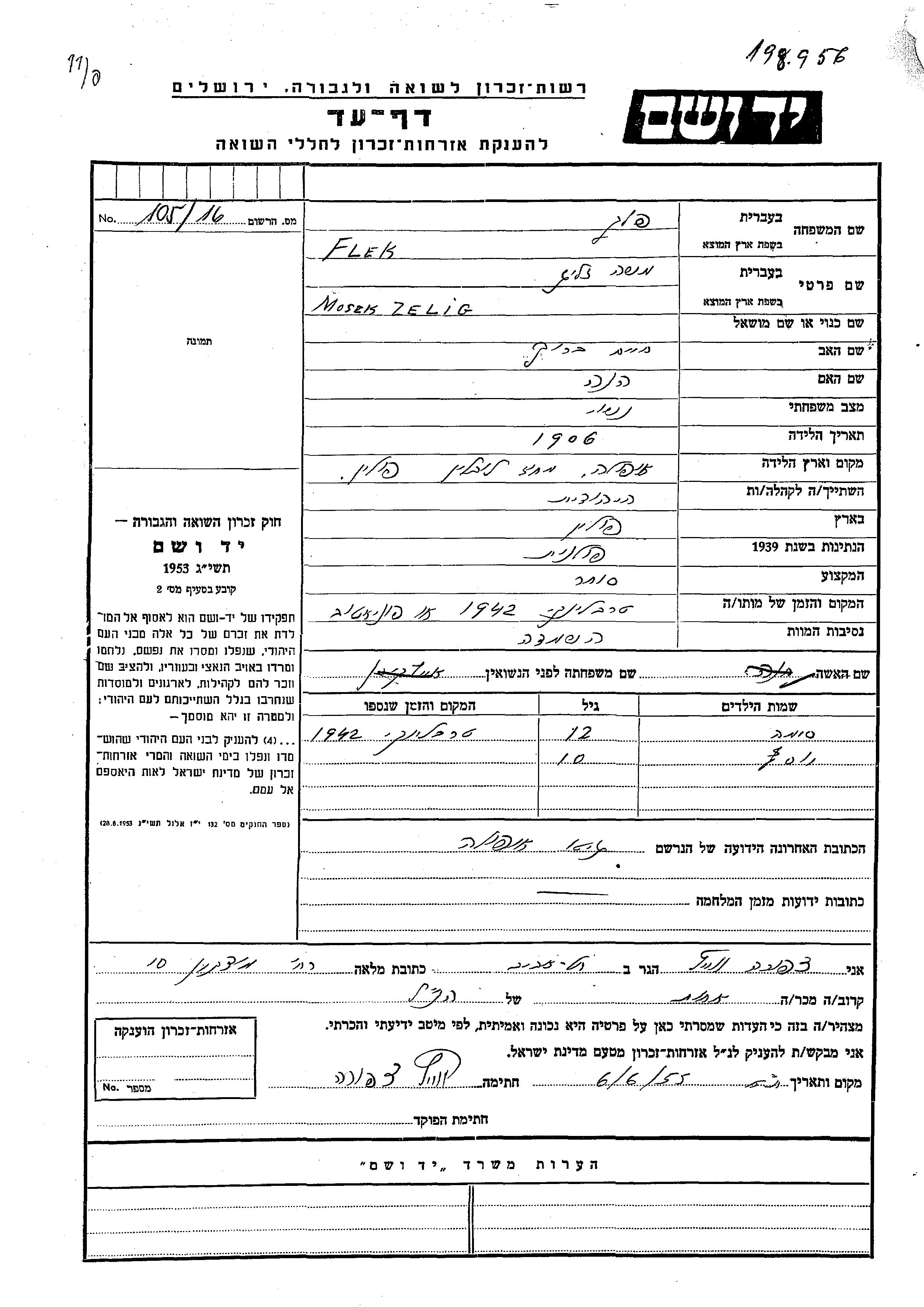 Флек Фальк | Иосеф | Польша | Лист свидетельских показаний | |