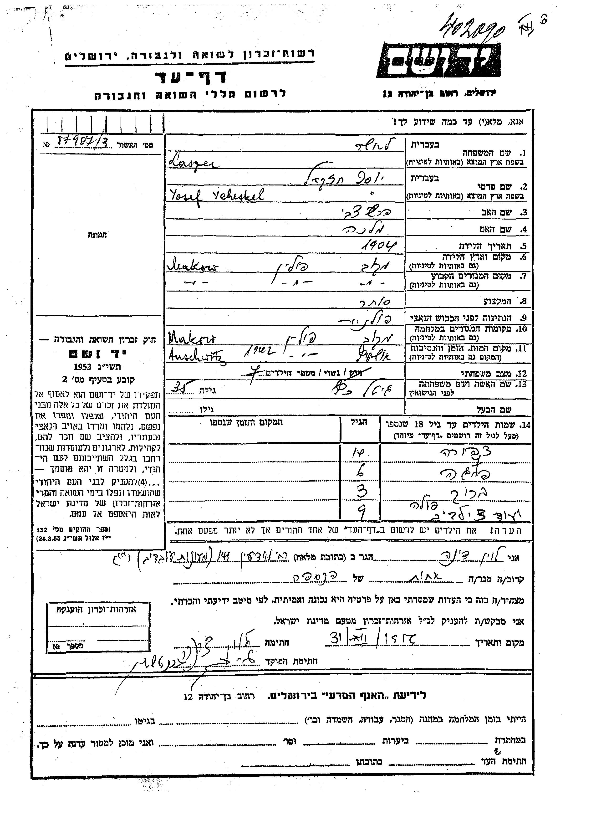 Лашер | Ехескель Иосеф | 1904 | Макув, Польша | Лист свидетельских показаний |