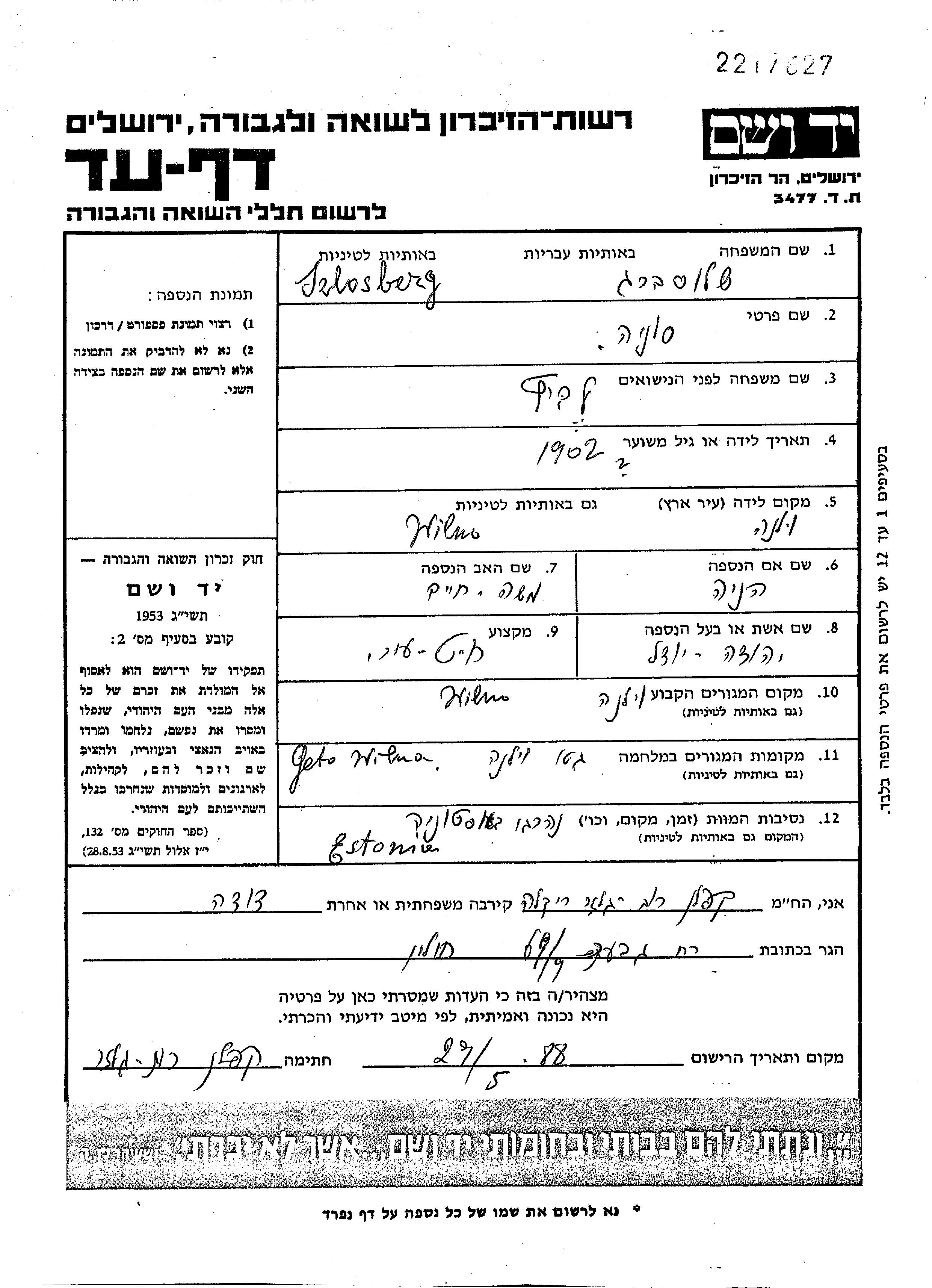 Яд Вашем - Листы свидетельских показаний Мемориального фонда
