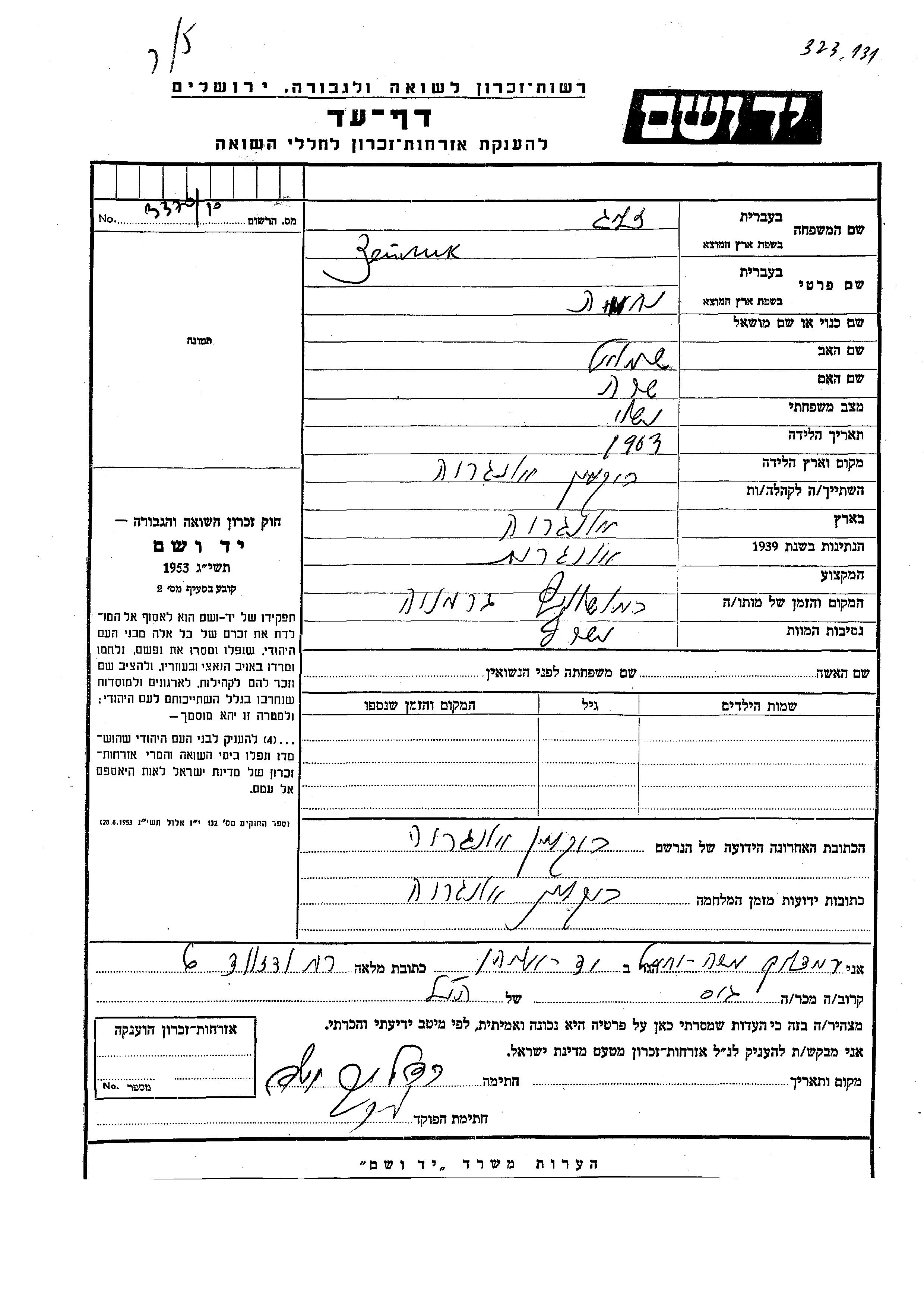 Яд Вашем - Листы свидетельских показаний Мемориального фонда