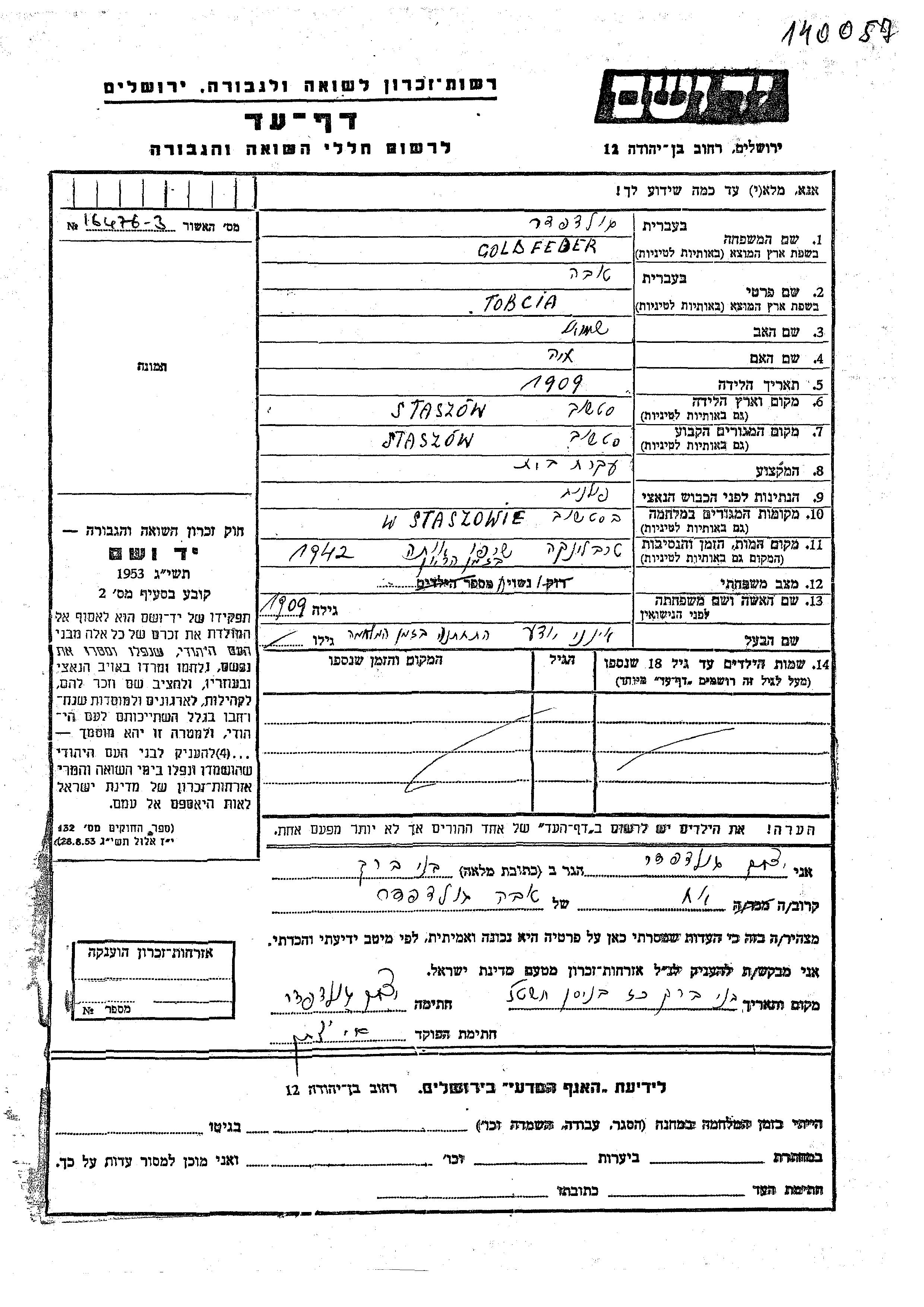 Гольдфедер | Това | Сташув, Польша | Лист свидетельских показаний |