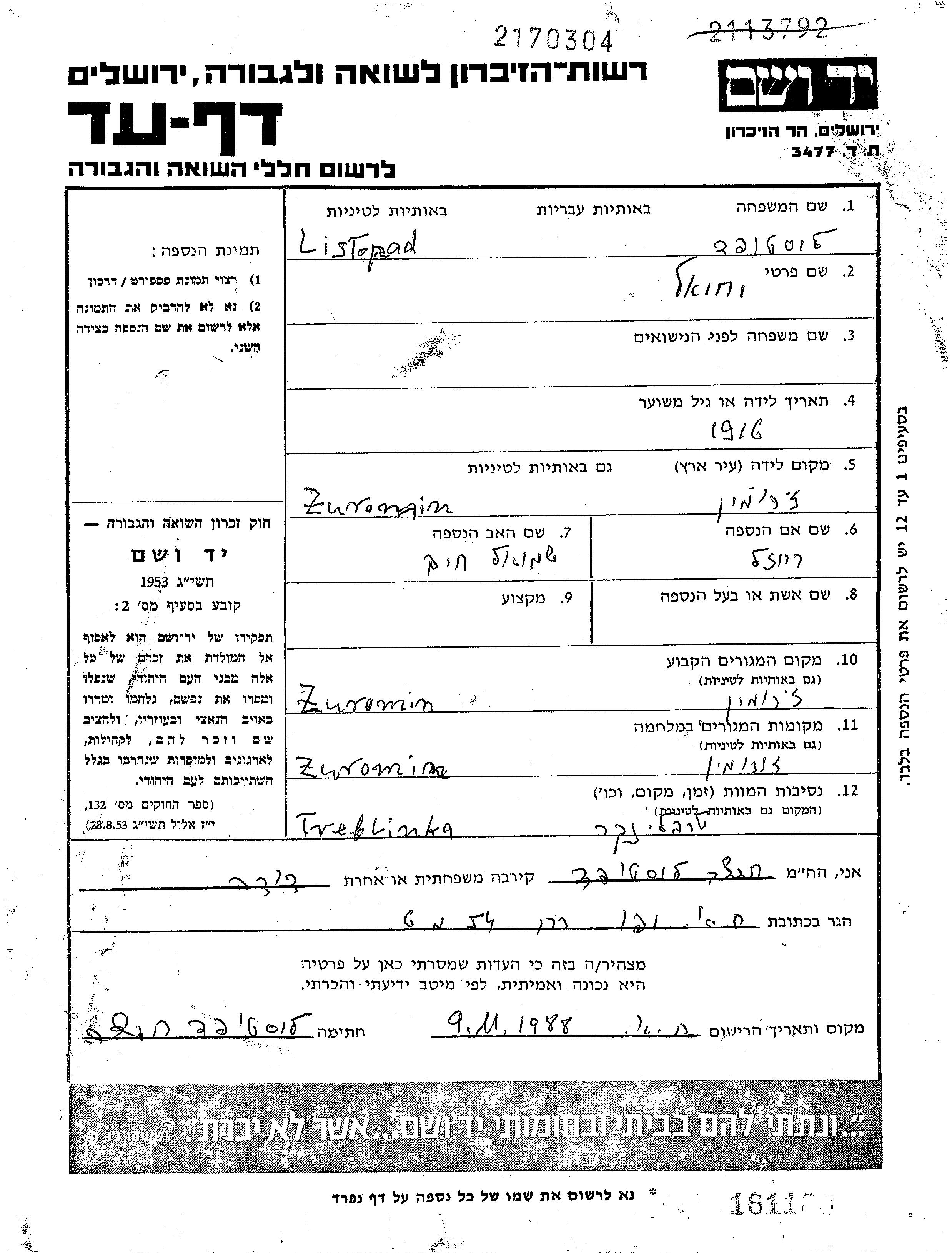 Поиск подателя Листа свидетельских показаний. Поиск по любому имени, включая уменьшительное или прозвище
