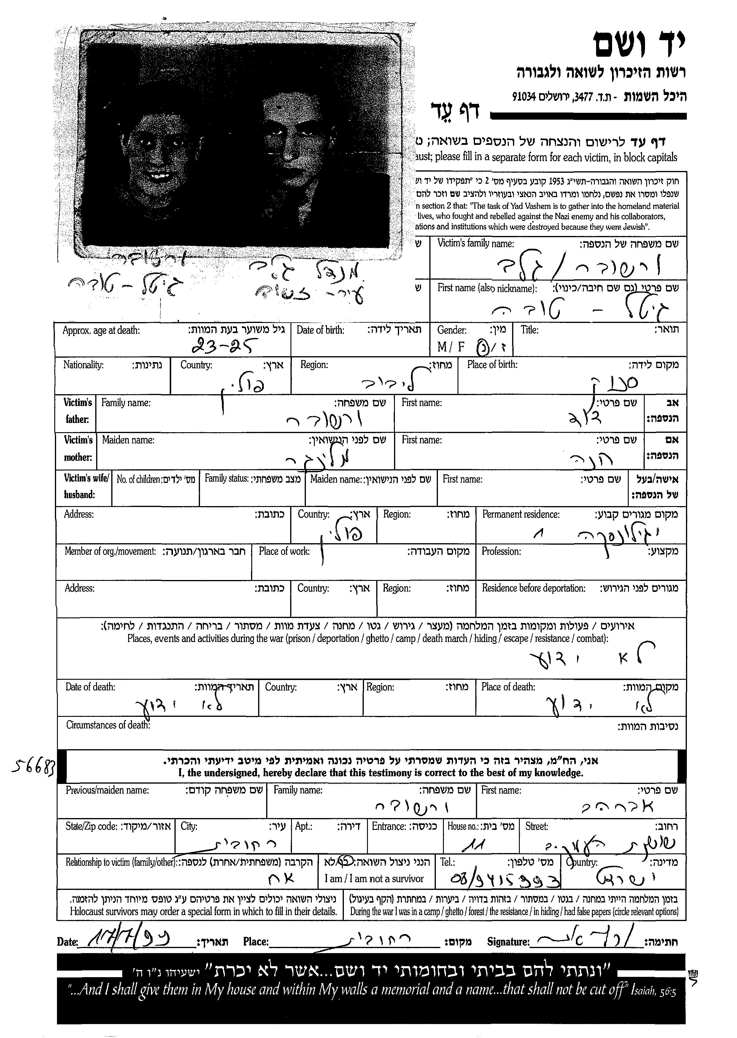 Яд Вашем - Листы свидетельских показаний Мемориального фонда