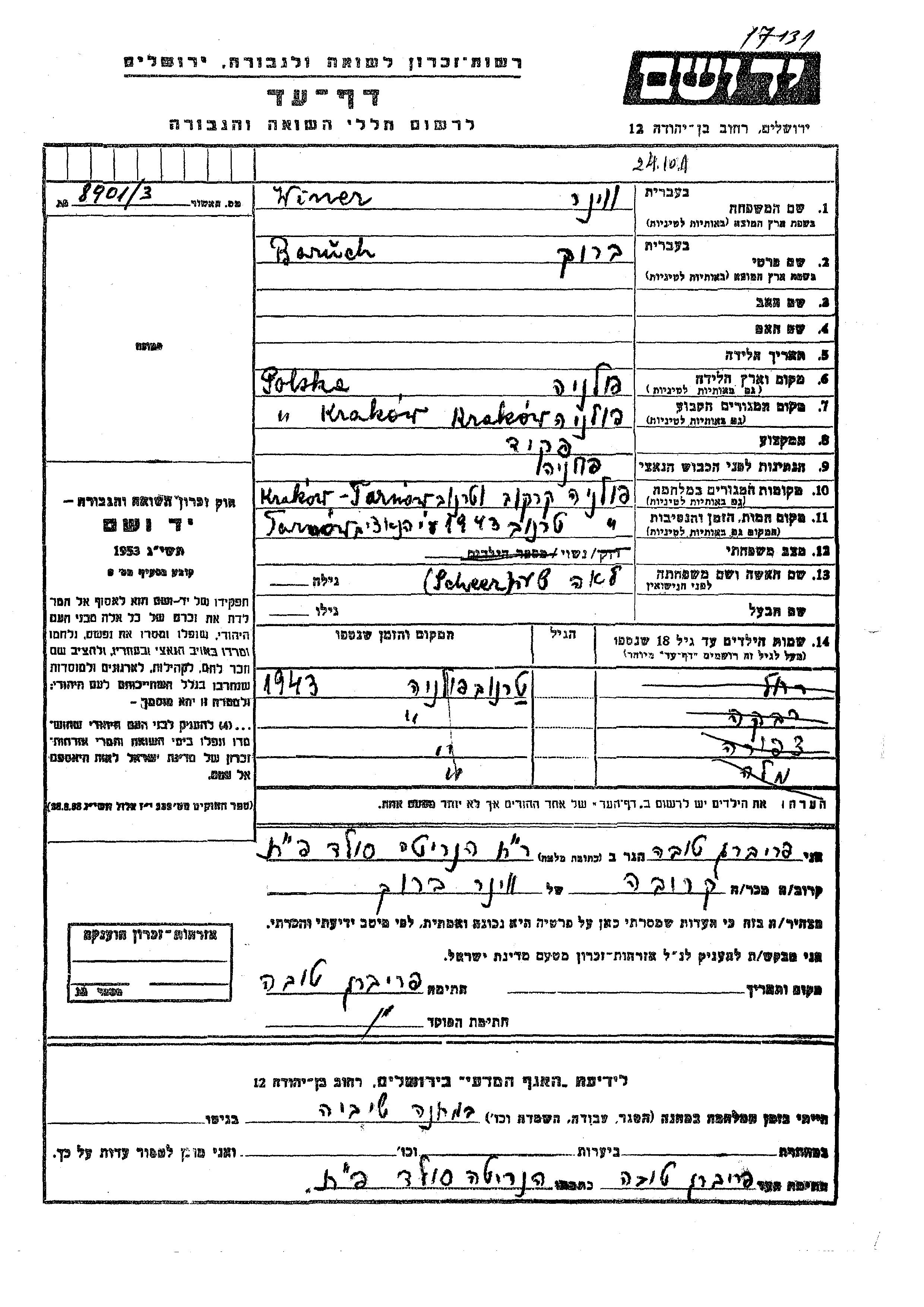 Яд Вашем - Листы свидетельских показаний Мемориального фонда