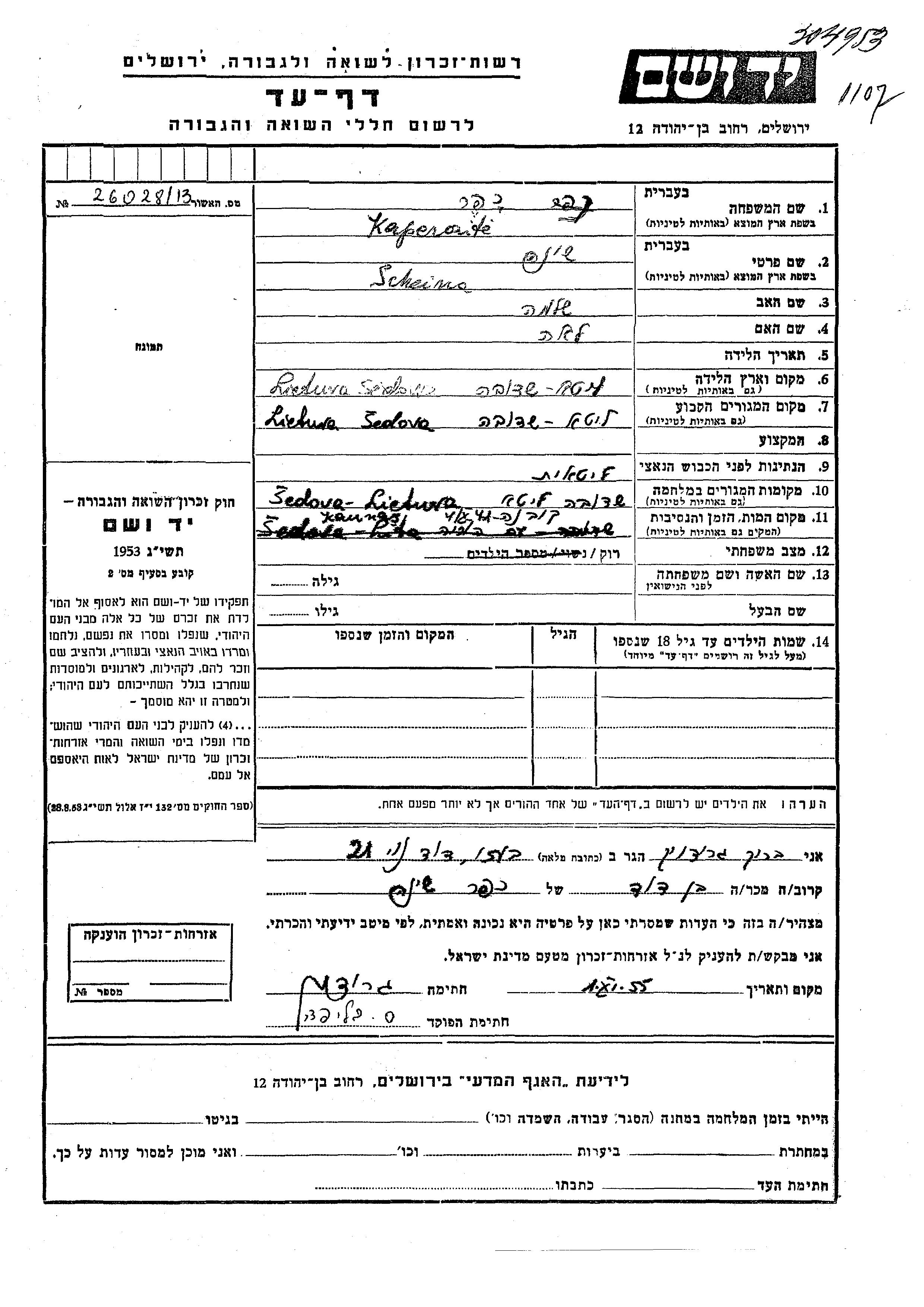 Каперайте | Шейна | Шедува, Литва | Лист свидетельских показаний | |