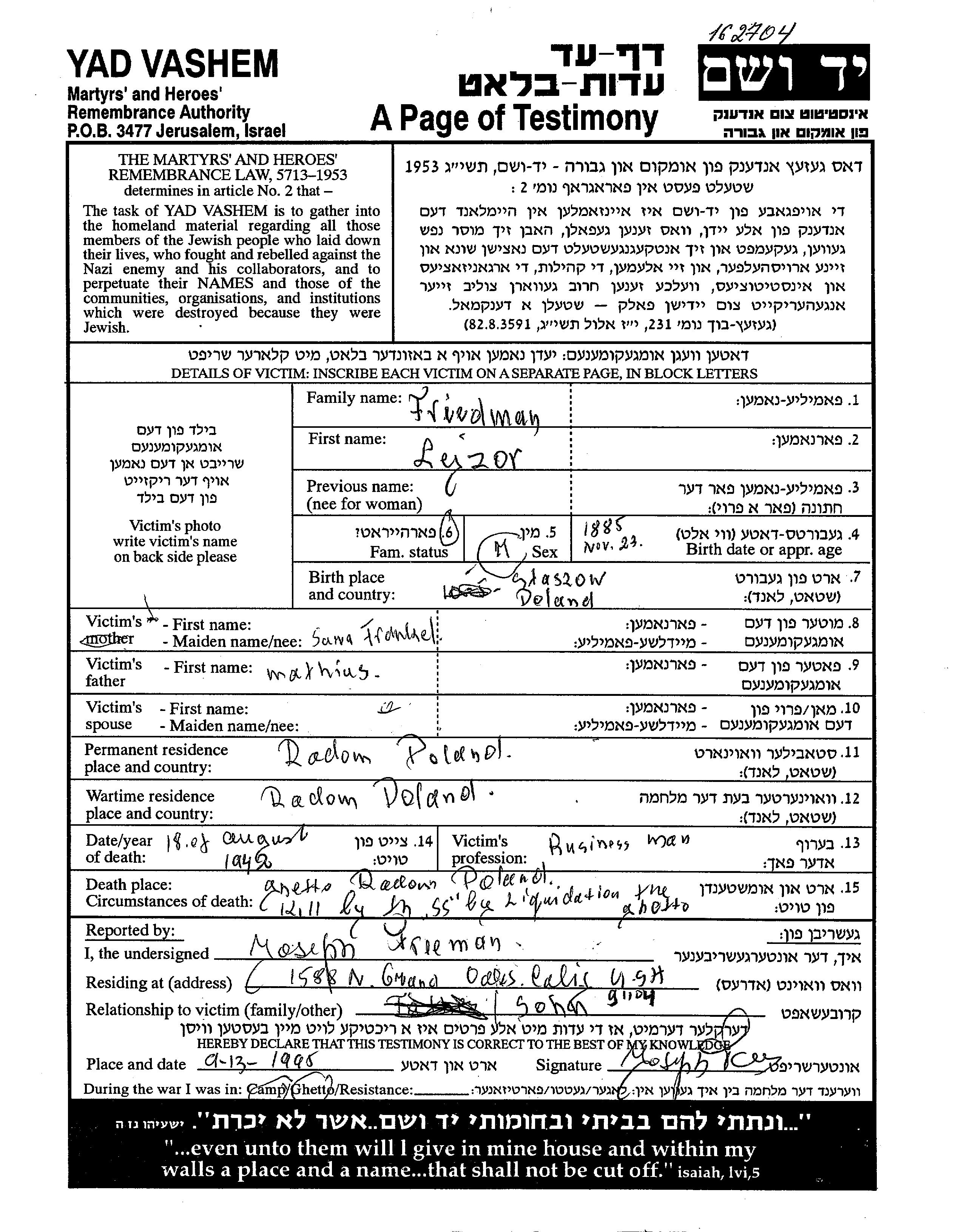 Поиск подателя Листа свидетельских показаний. Поиск по любому имени, включая уменьшительное или прозвище