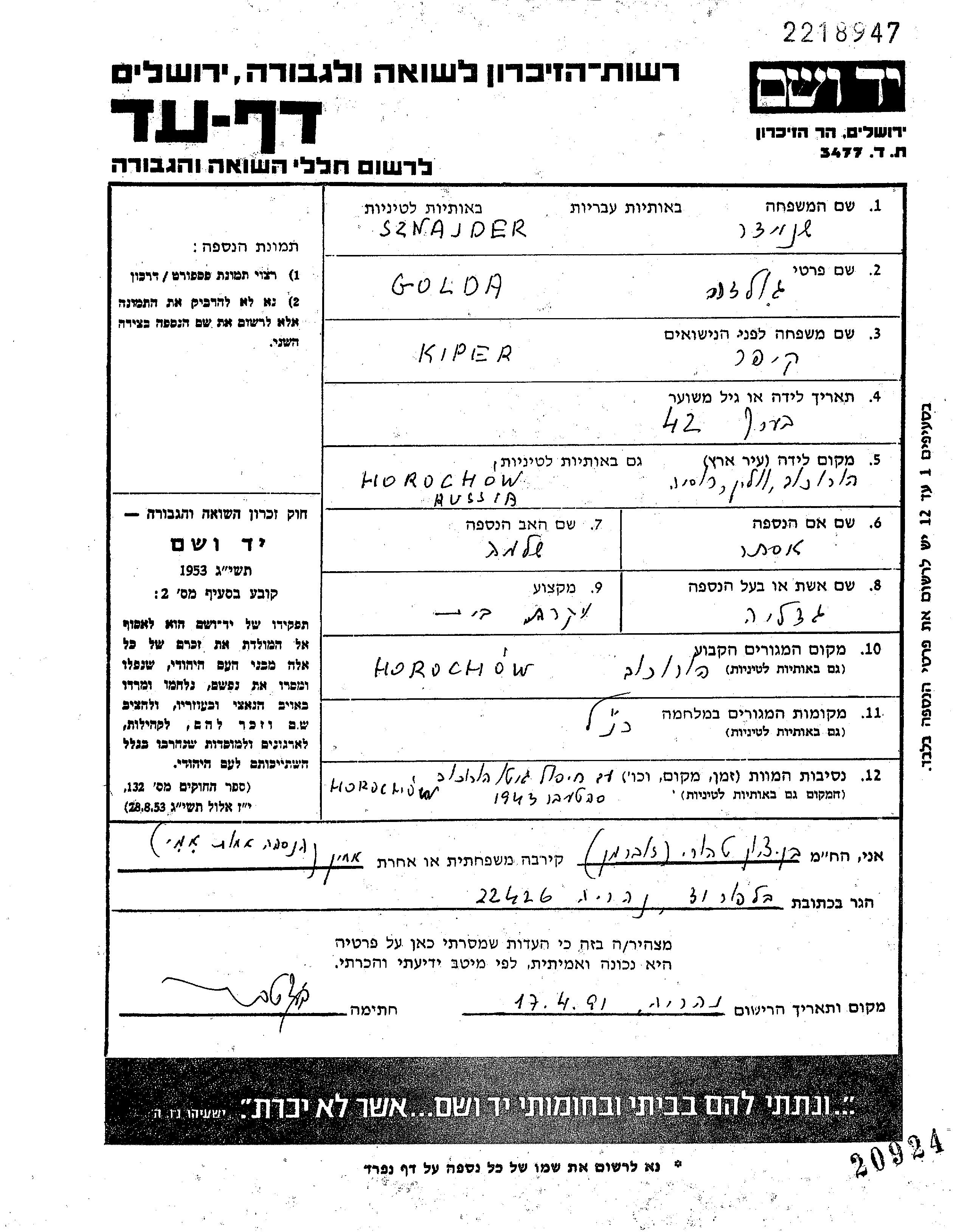 Поиск подателя Листа свидетельских показаний. Поиск по любому имени, включая уменьшительное или прозвище