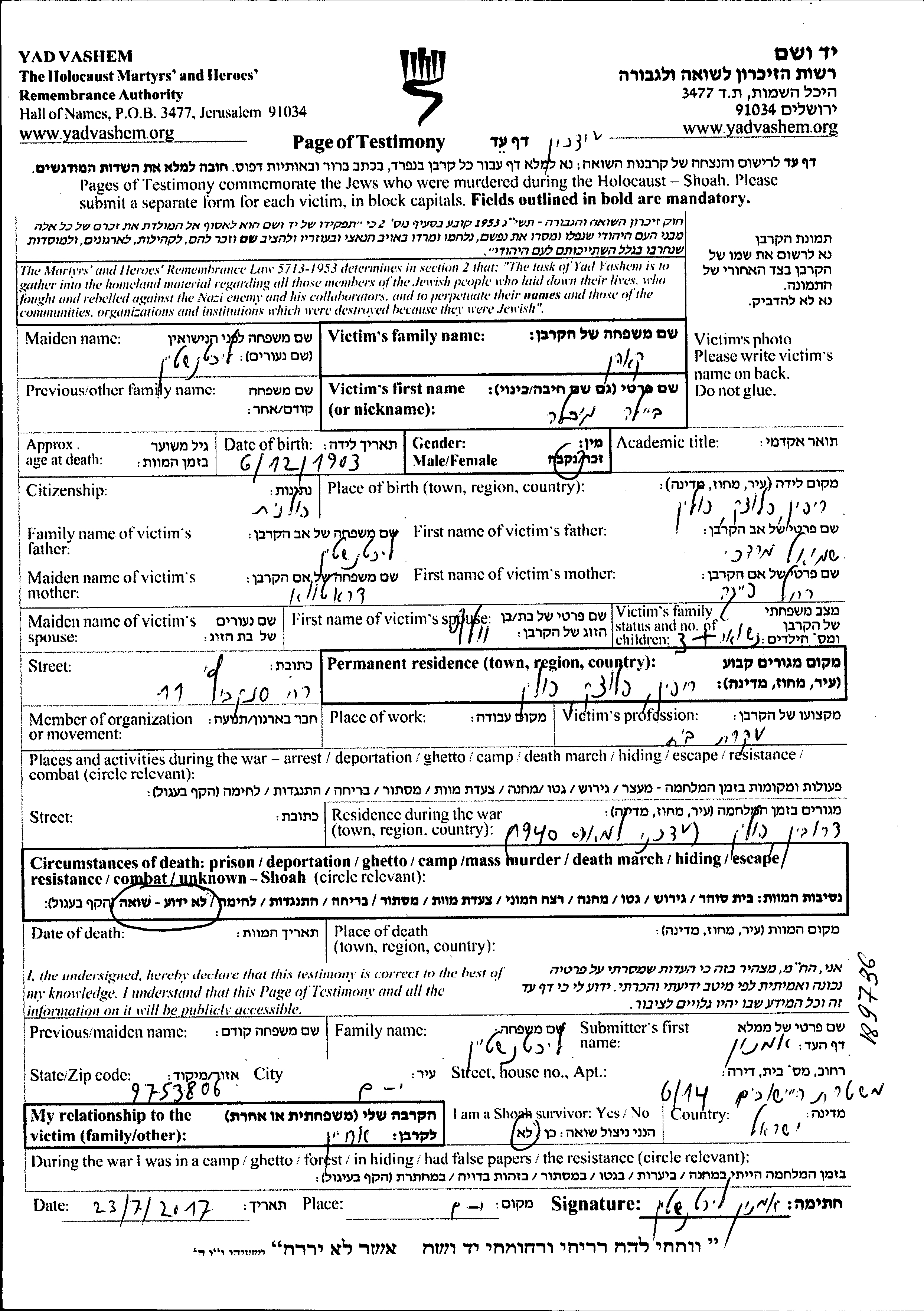Яд Вашем - Листы свидетельских показаний Мемориального фонда