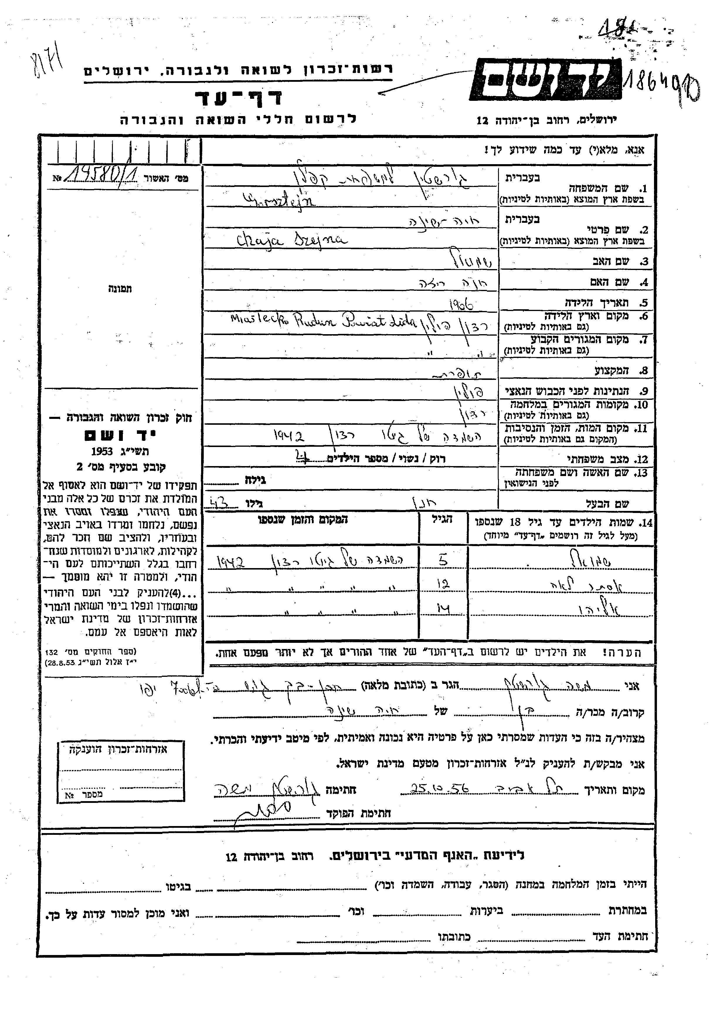 Яд Вашем - Листы свидетельских показаний Мемориального фонда
