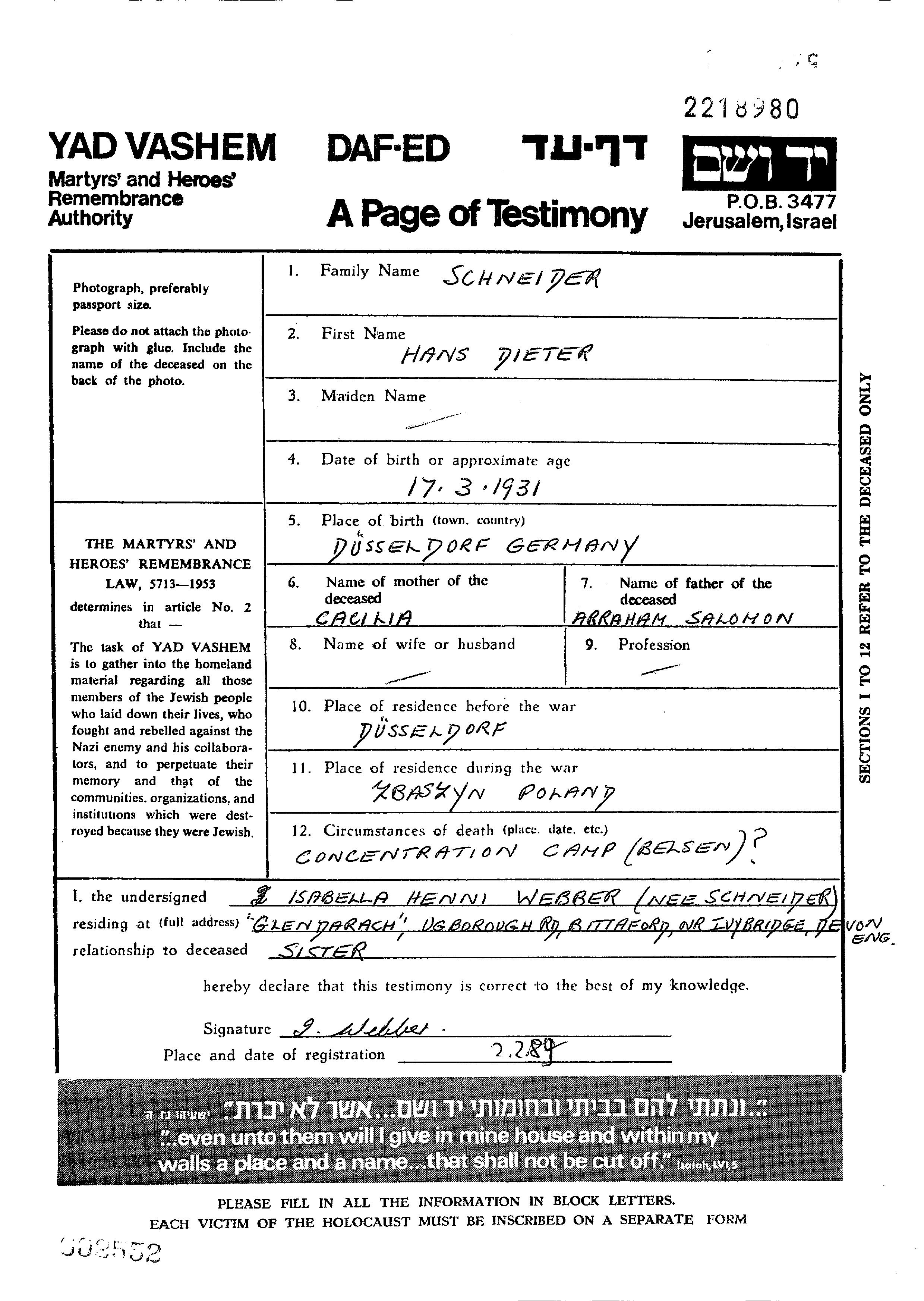 | Шнайдер | Дитер Ханс | 1931 | Дюссельдорф, Германия | Лист свидетельских показаний |