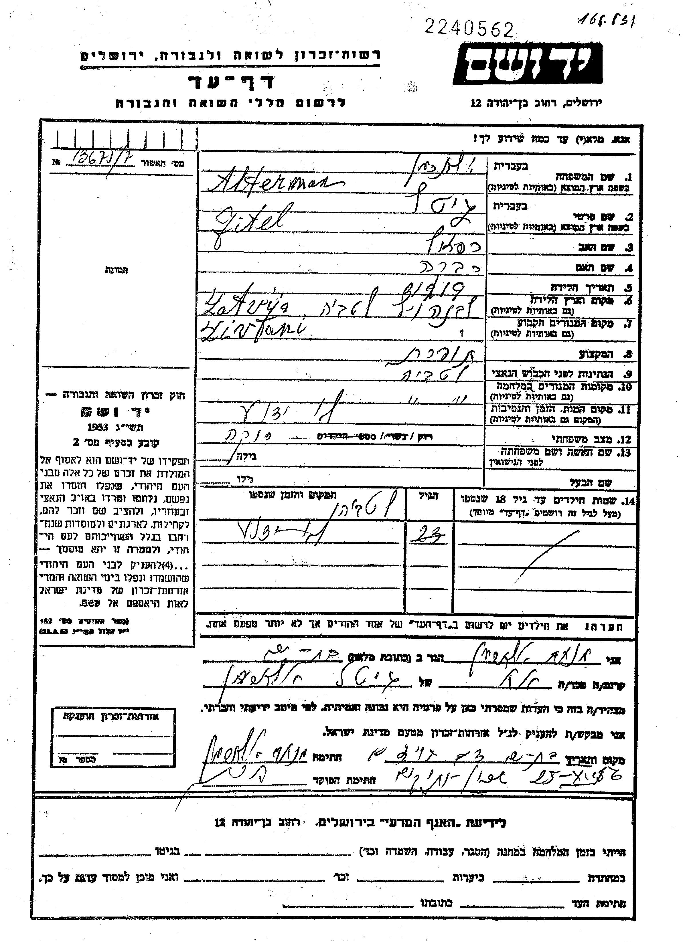 Яд Вашем - Листы свидетельских показаний Мемориального фонда