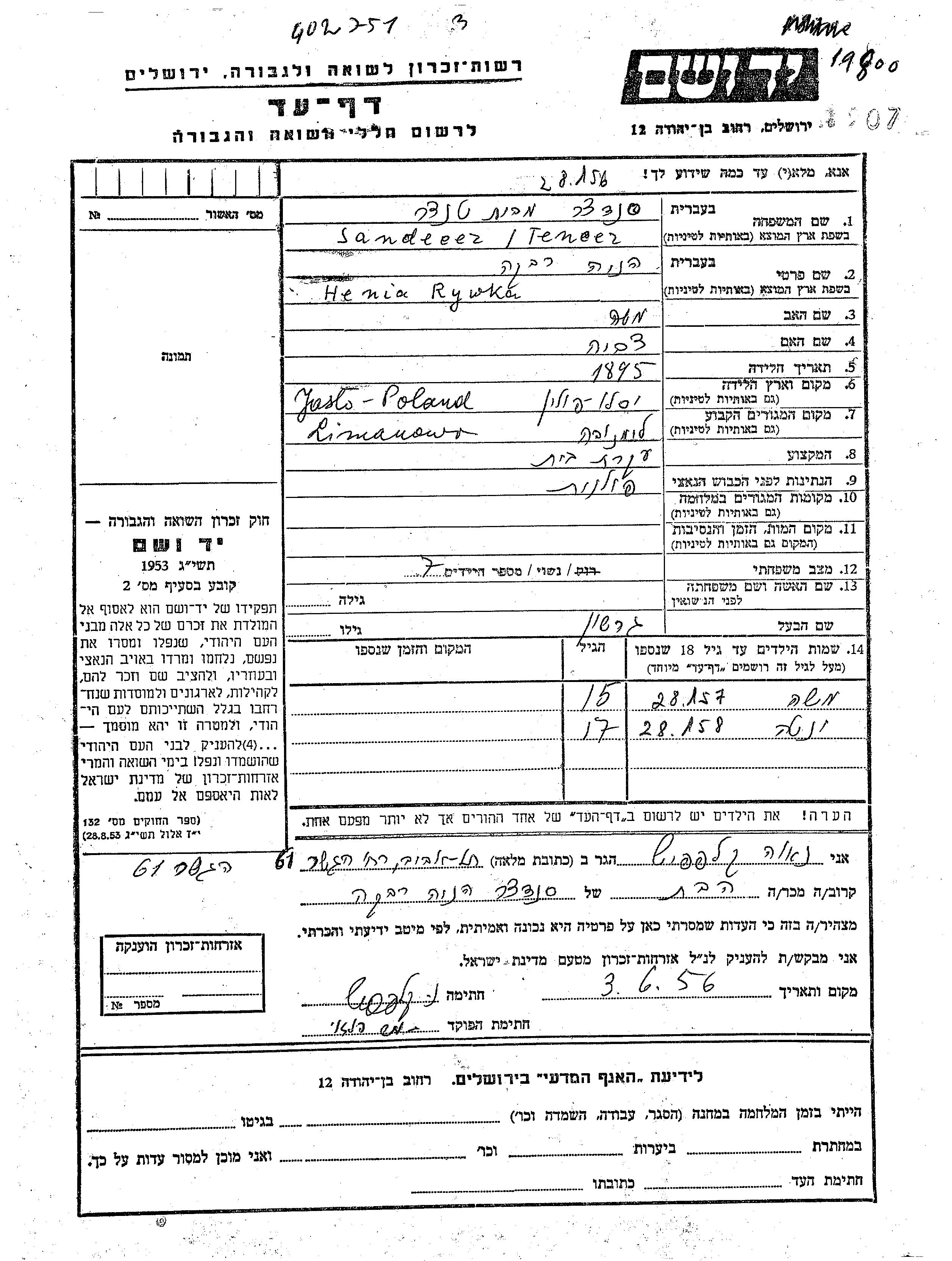 Яд Вашем - Листы свидетельских показаний Мемориального фонда