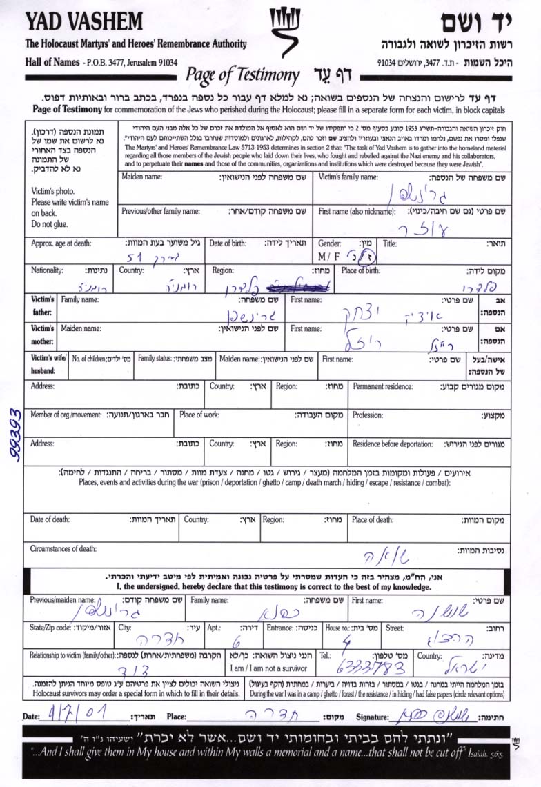 Яд Вашем - Листы свидетельских показаний Мемориального фонда