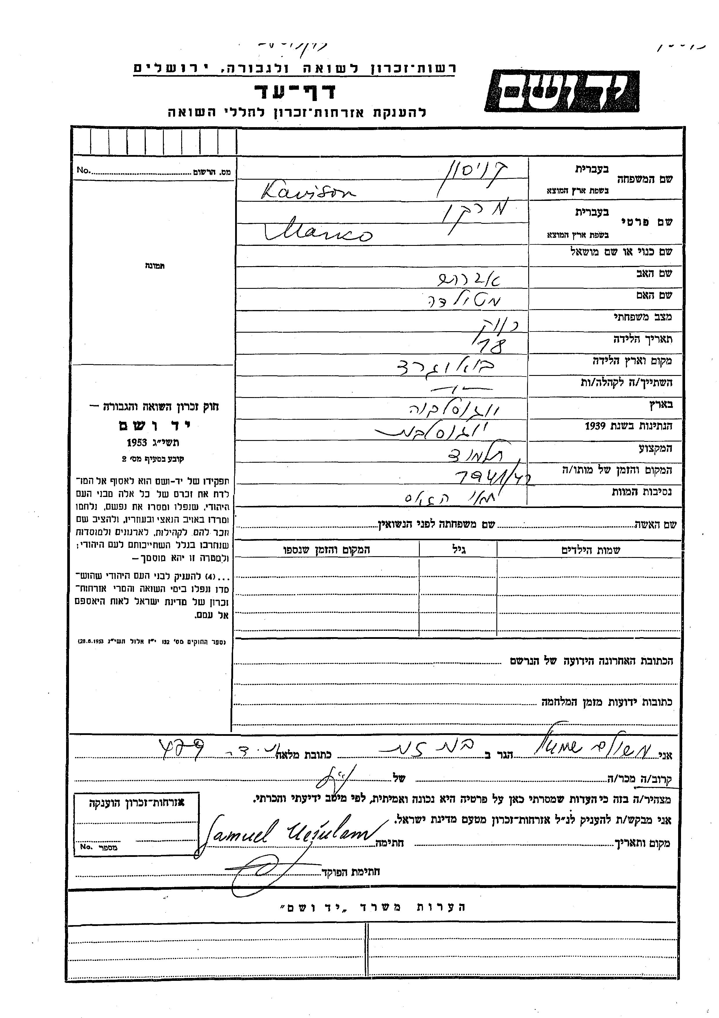 Яд Вашем - Листы свидетельских показаний Мемориального фонда