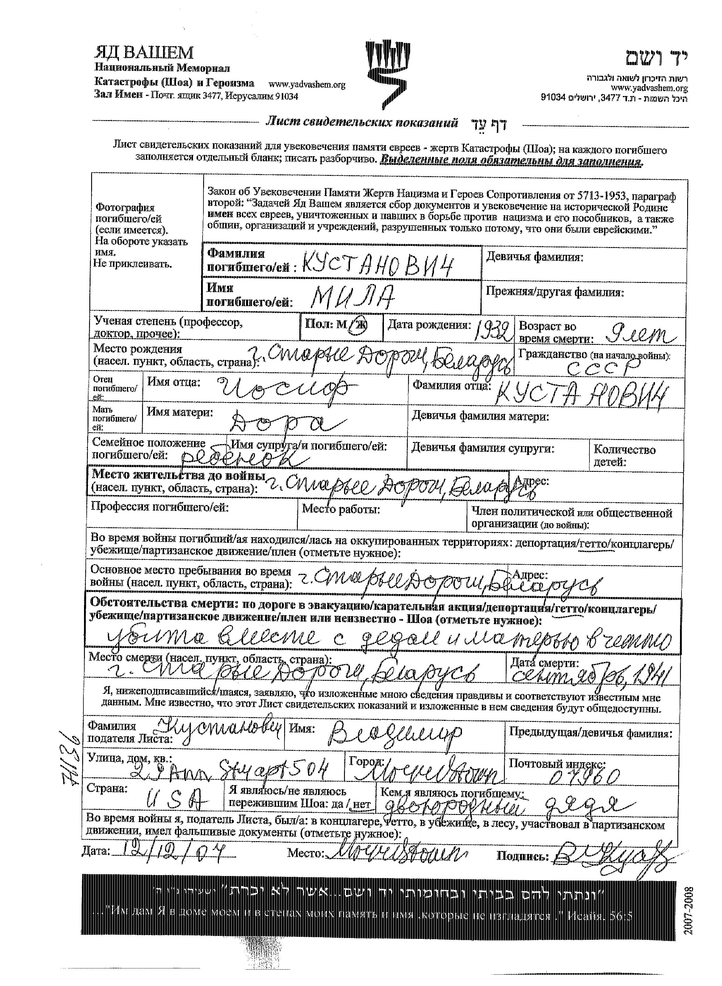 Поиск подателя Листа свидетельских показаний. Поиск по любому имени, включая уменьшительное или прозвище