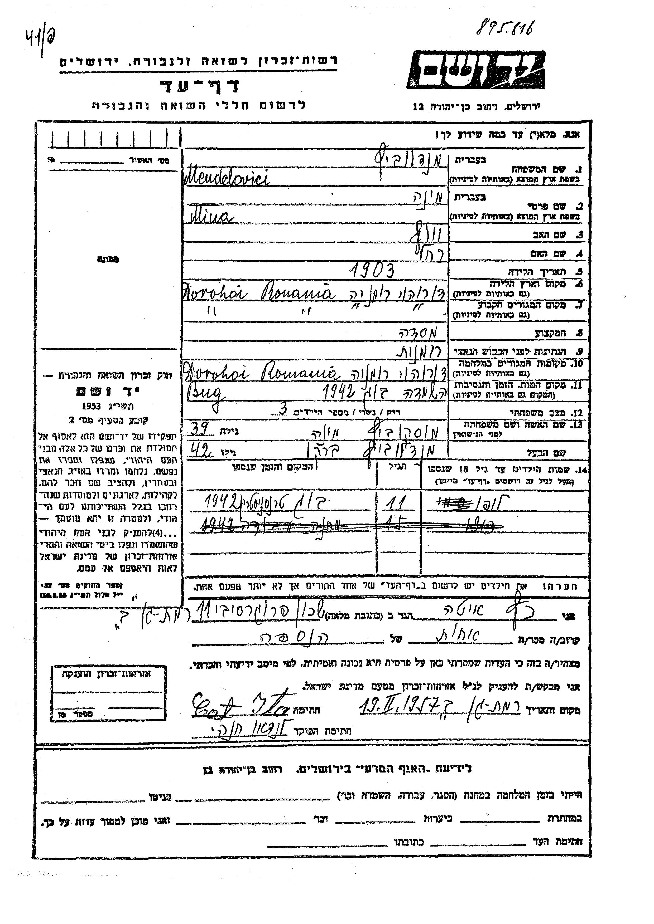 Менделович Муна Мина 1903 Дорохой, Румыния Лист свидетельских показаний