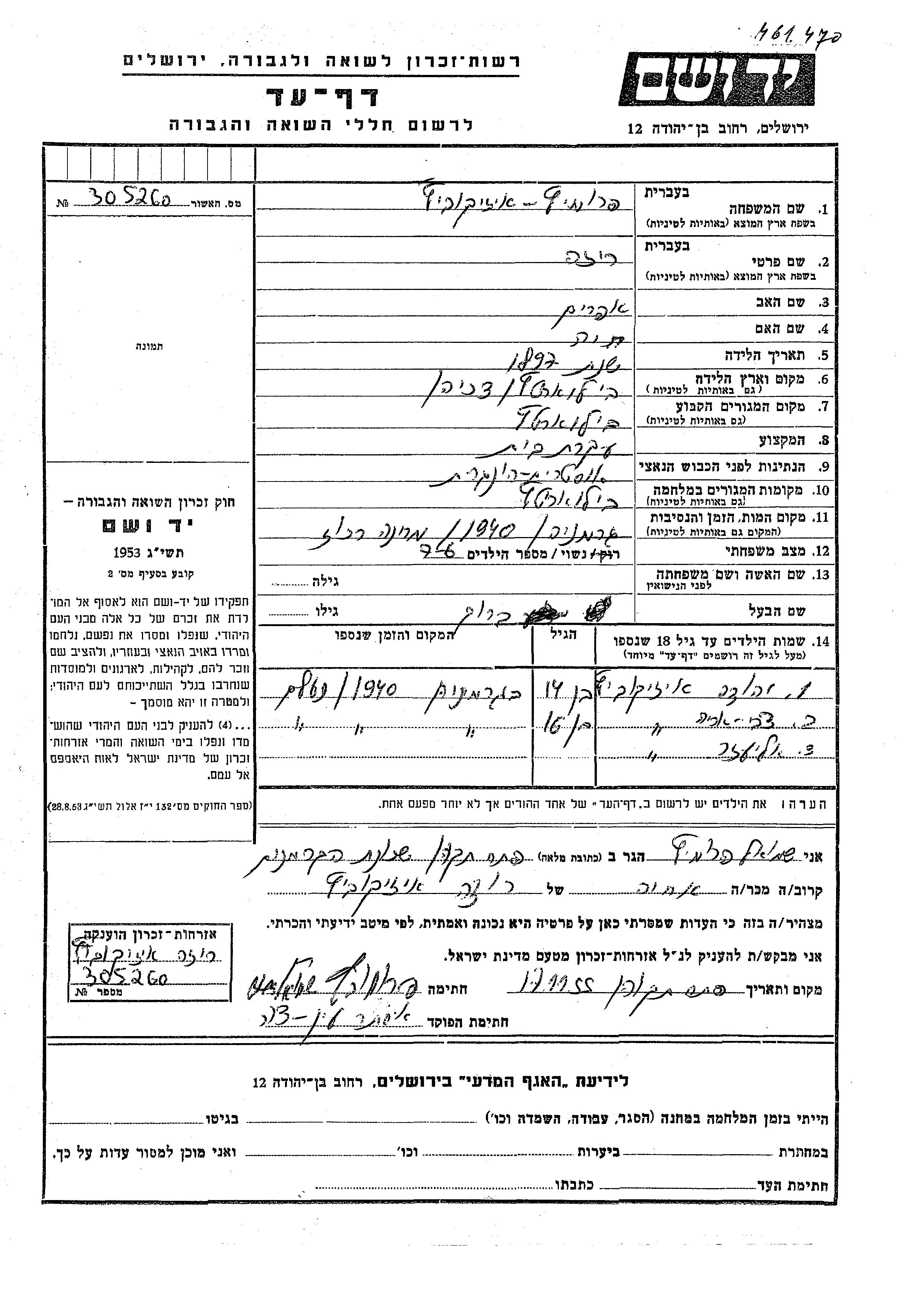Эйзикович | Рейзи | 1899 | Беловарец, Чехословакия | Лист свидетельских показаний |
