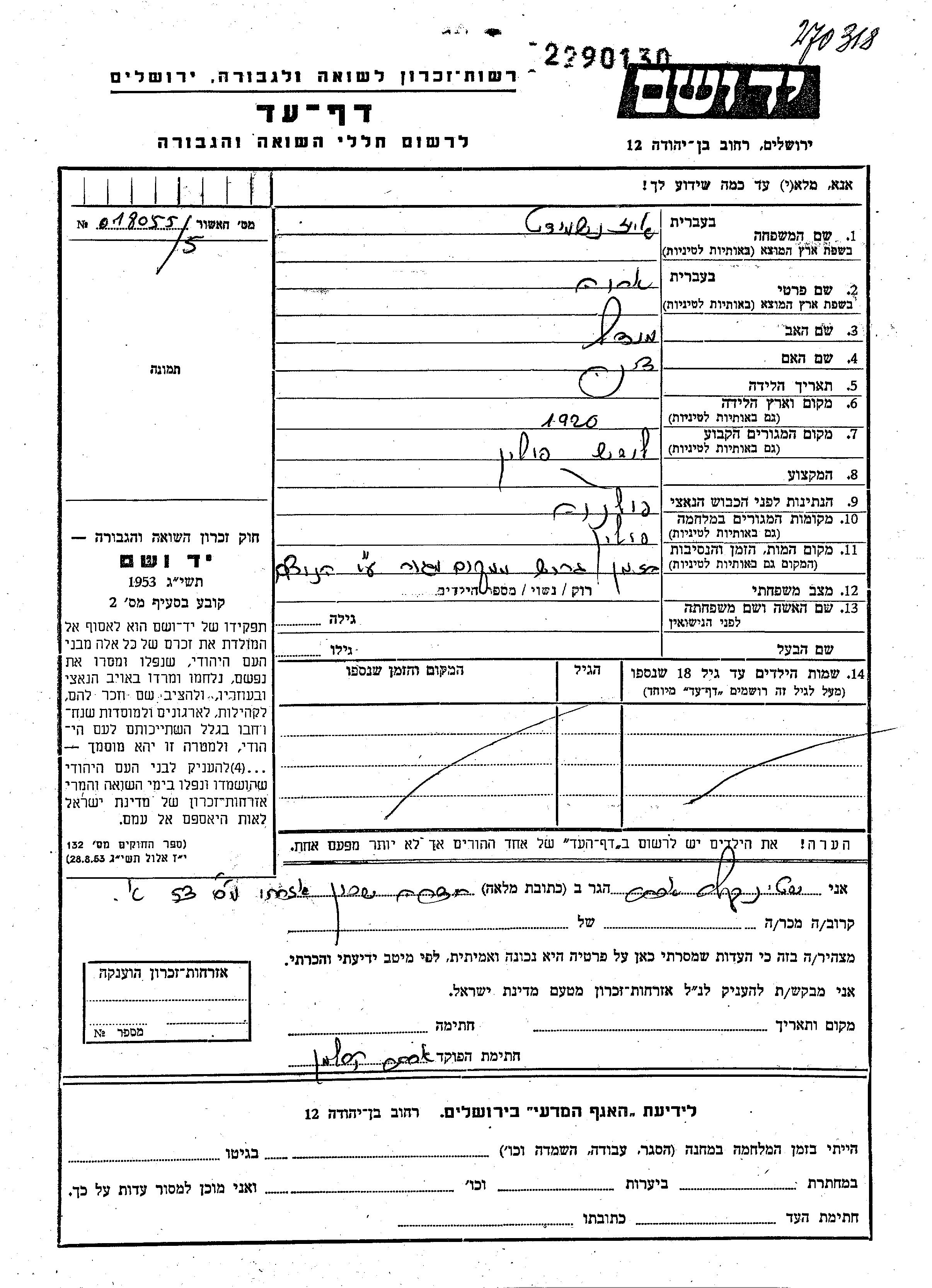 Яд Вашем - Листы свидетельских показаний Мемориального фонда