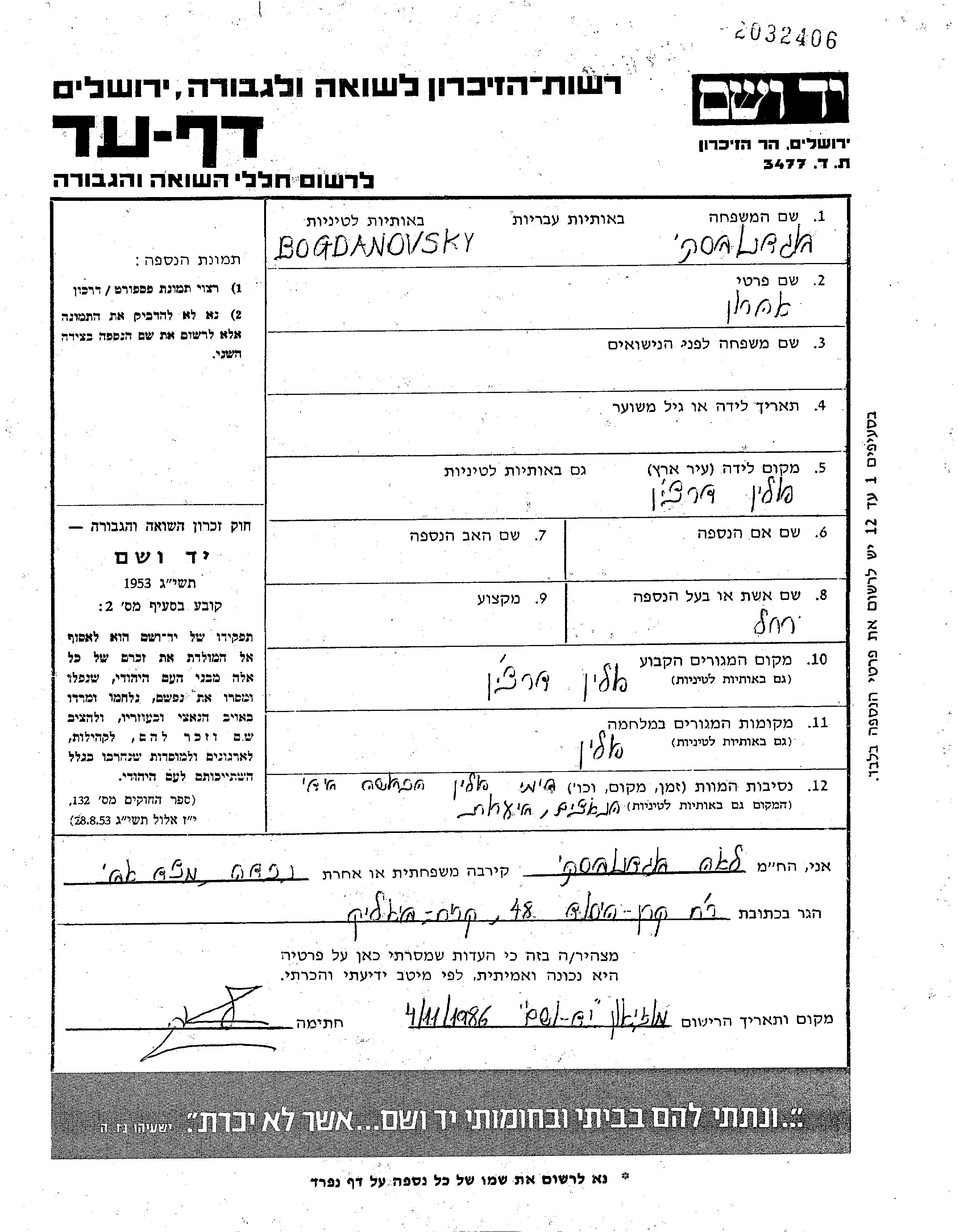Богдановский | Арон | 1905 | Деречин, Польша | Лист свидетельских показаний |