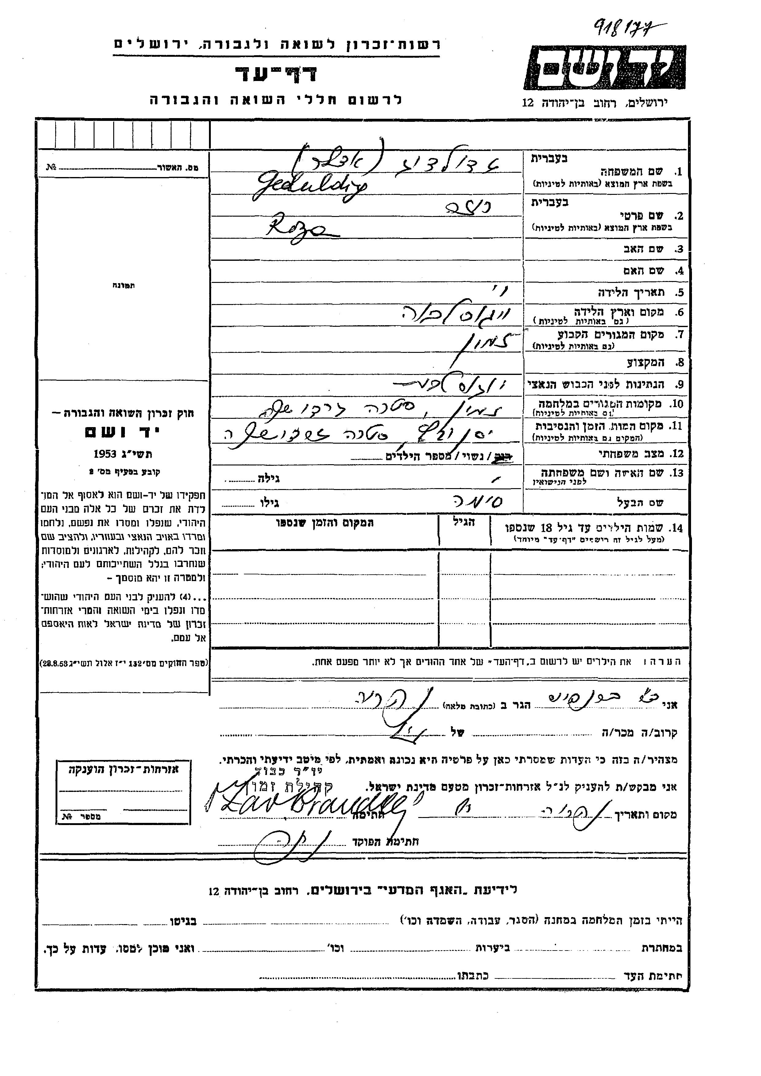 | Гедульдиг | Роза | Земун, Югославия | Лист свидетельских показаний |