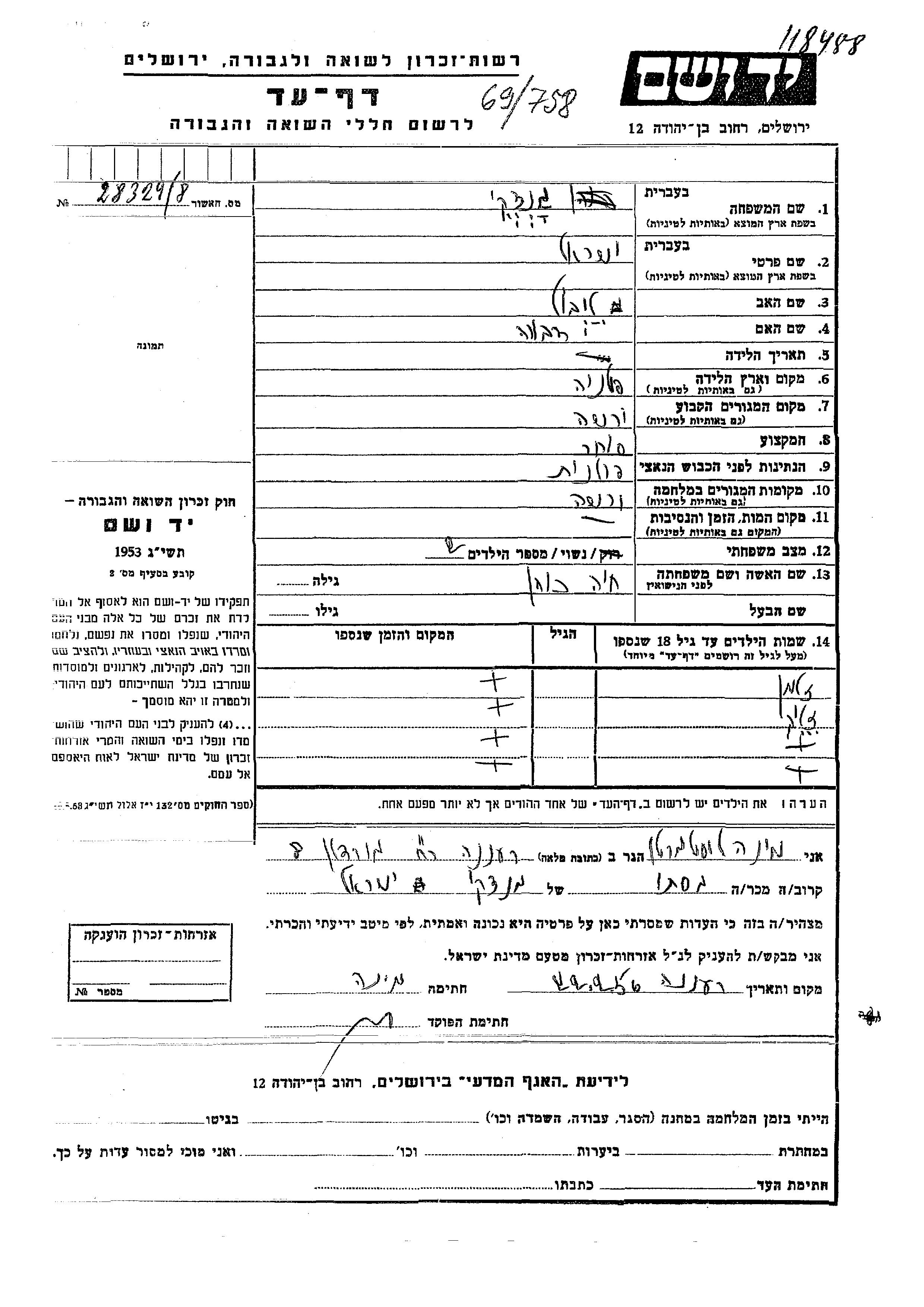 Яд Вашем - Листы свидетельских показаний Мемориального фонда