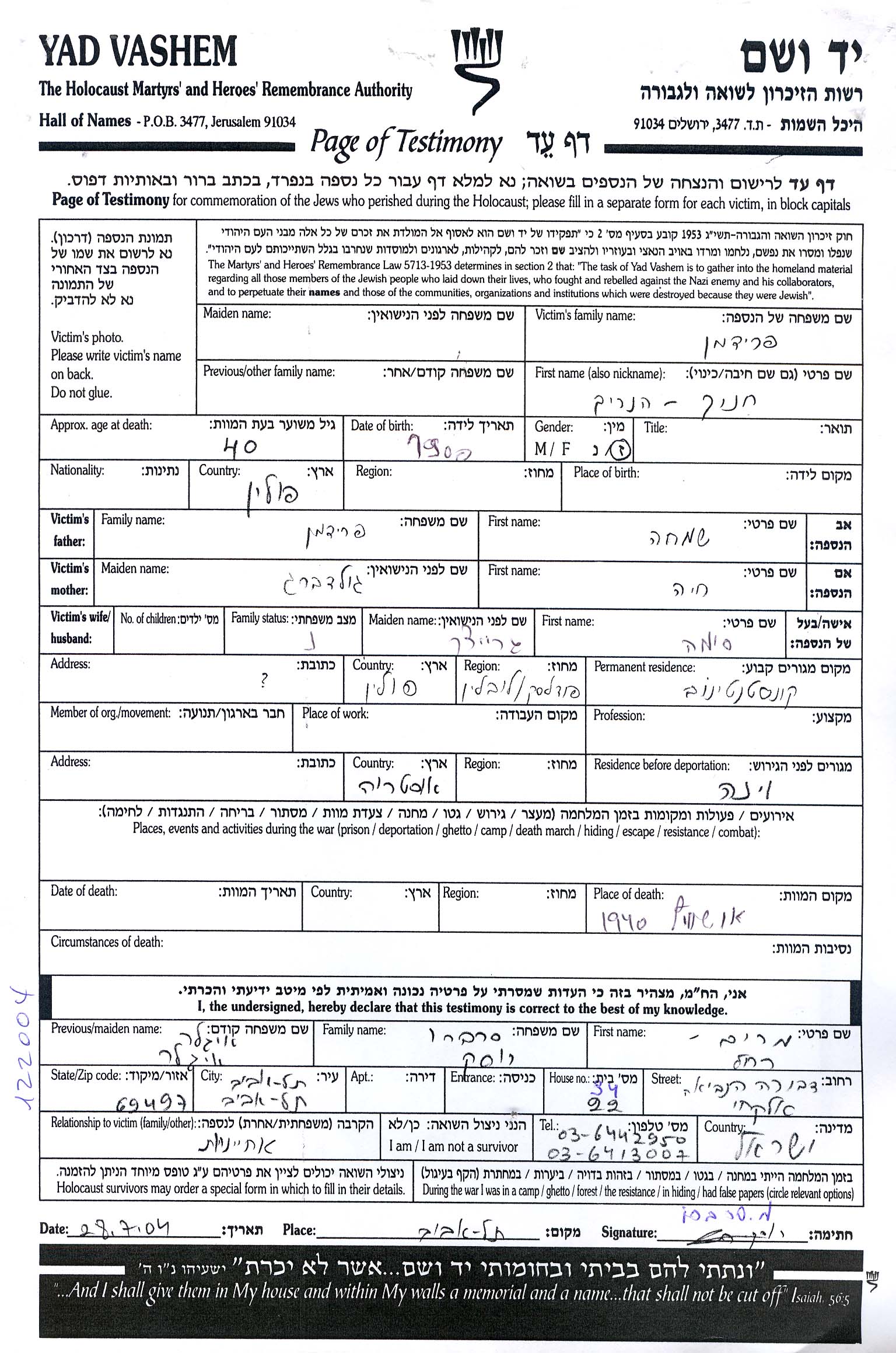 Поиск подателя Листа свидетельских показаний. Поиск по любому имени, включая уменьшительное или прозвище
