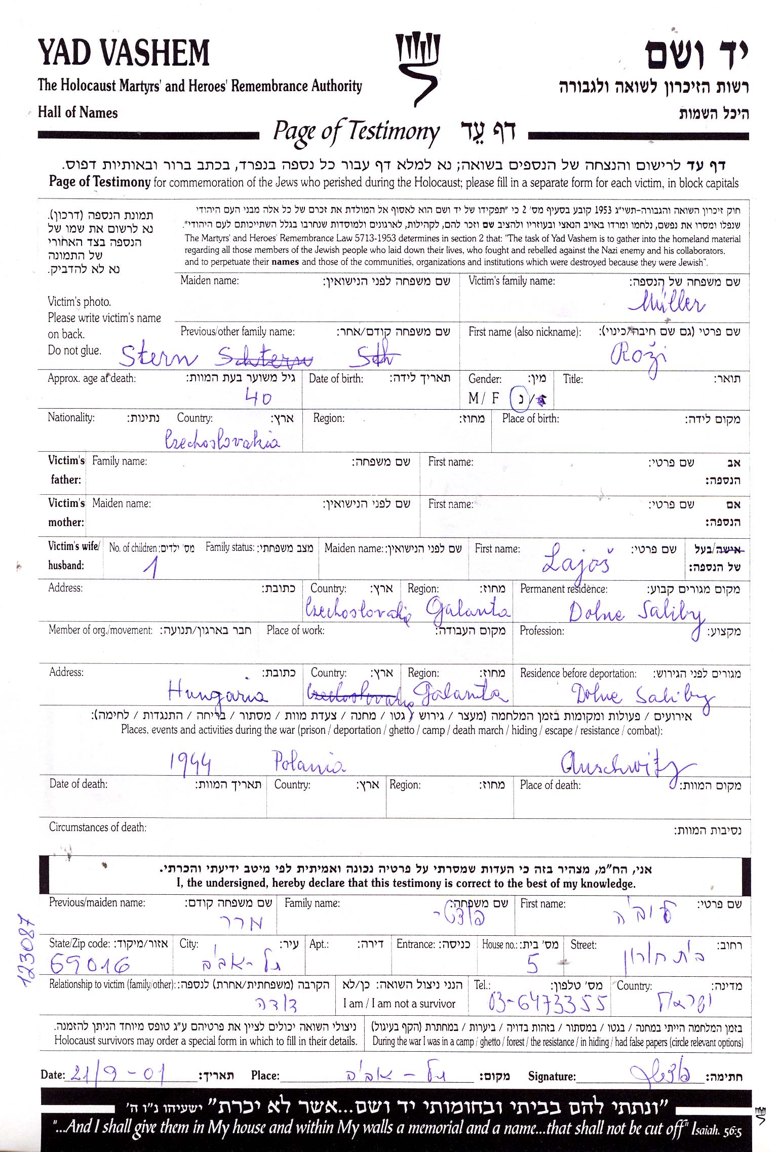 Миллер Роза Долне Салиби, Чехословакия Лист свидетельских показаний