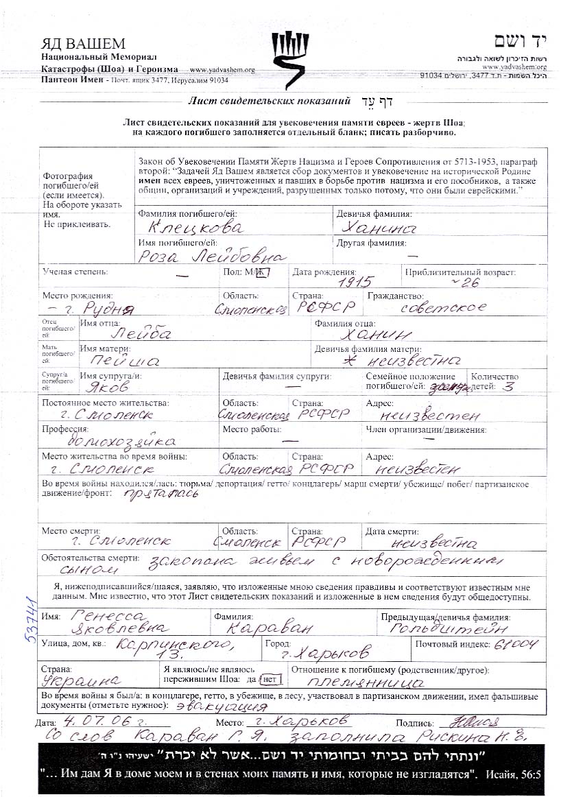 Поиск подателя Листа свидетельских показаний. Поиск по любому имени, включая уменьшительное или прозвище