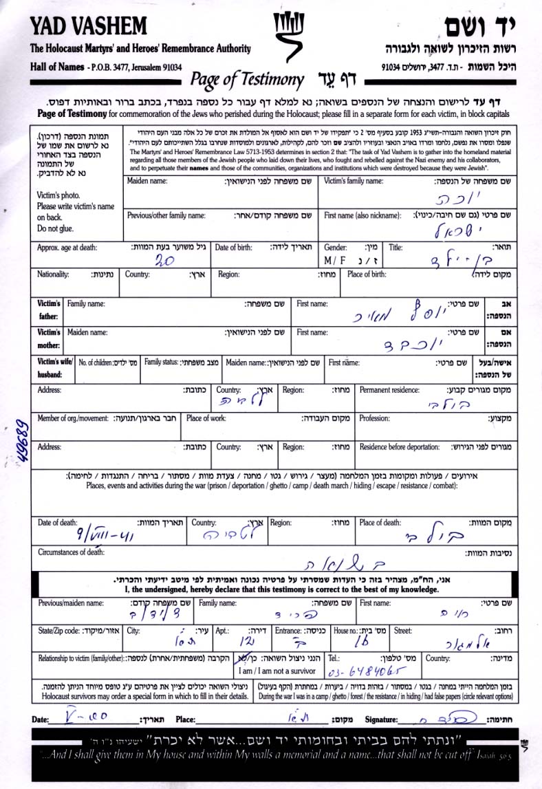 Яд Вашем - Листы свидетельских показаний Мемориального фонда
