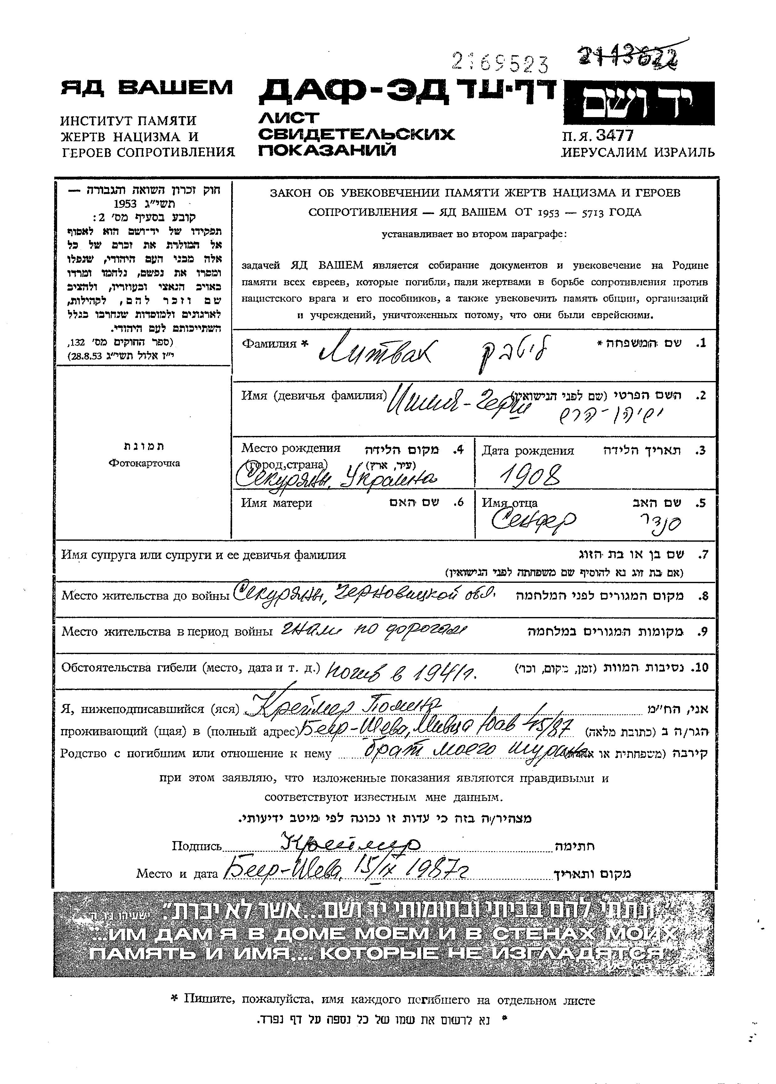 Поиск подателя Листа свидетельских показаний. Поиск по любому имени, включая уменьшительное или прозвище