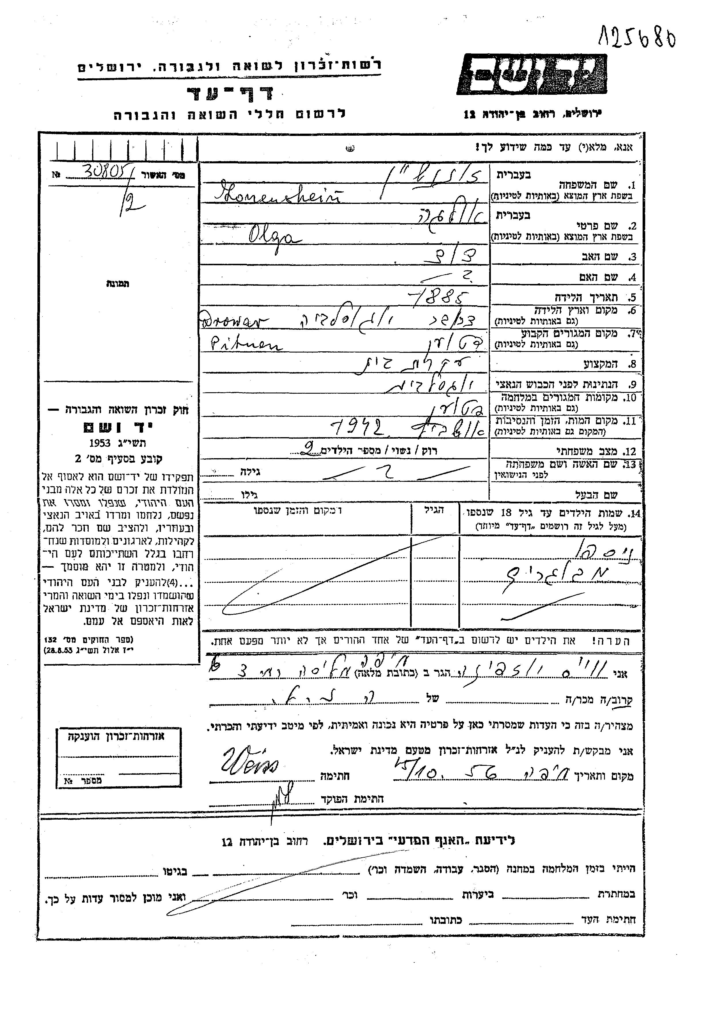 Соненшайн | Ольга | Птуй, Югославия | Лист свидетельских показаний | |