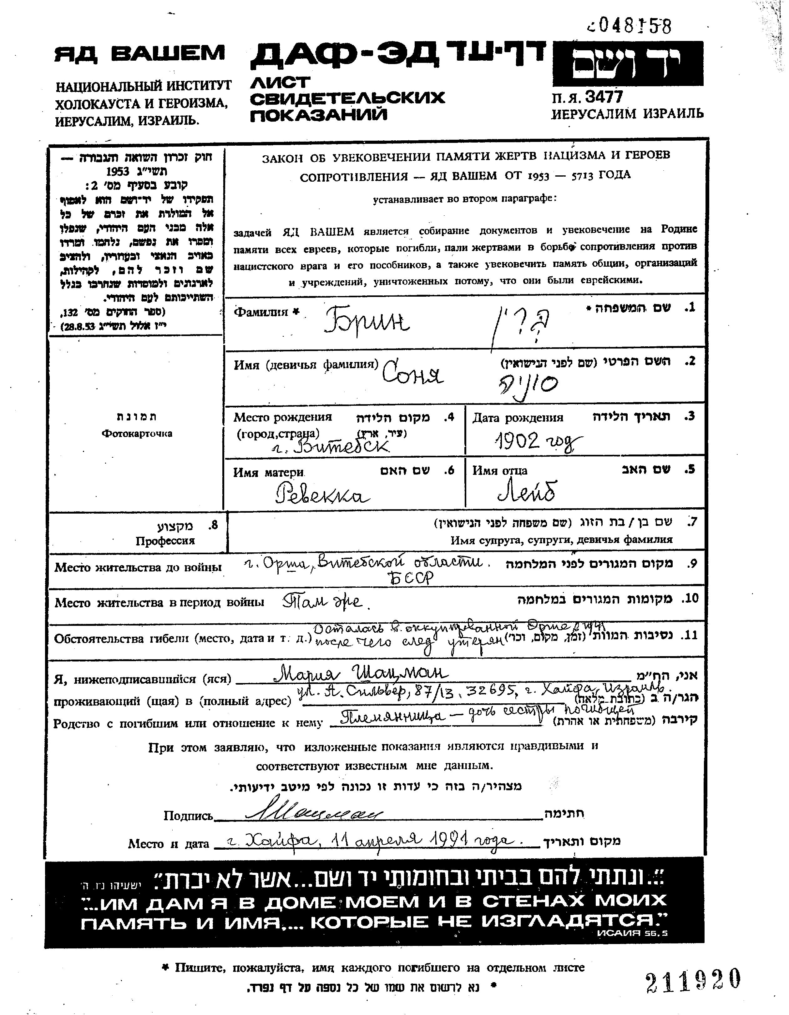 Поиск подателя Листа свидетельских показаний. Поиск по любому имени, включая уменьшительное или прозвище