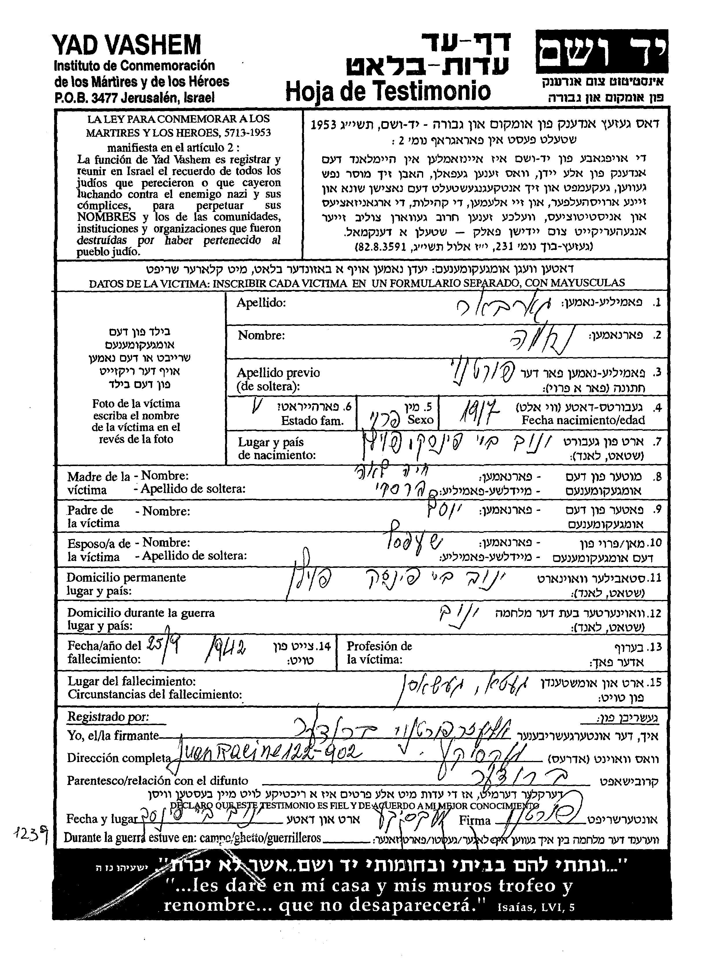 Гарбер | Нехама | 1917 | Янув, Польша | Лист свидетельских показаний |