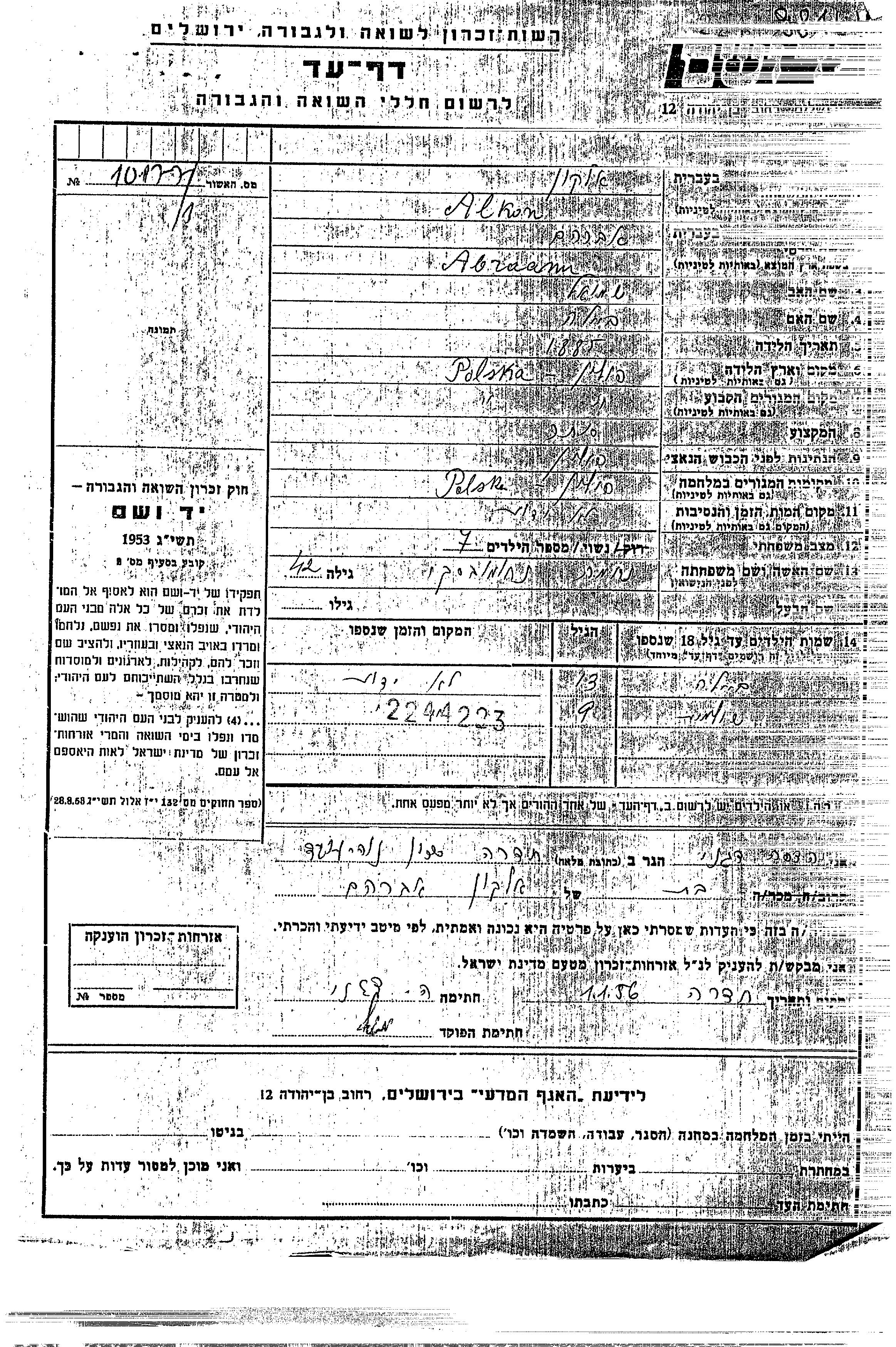 Алькон | Шуламит | Польша | Лист свидетельских показаний | |