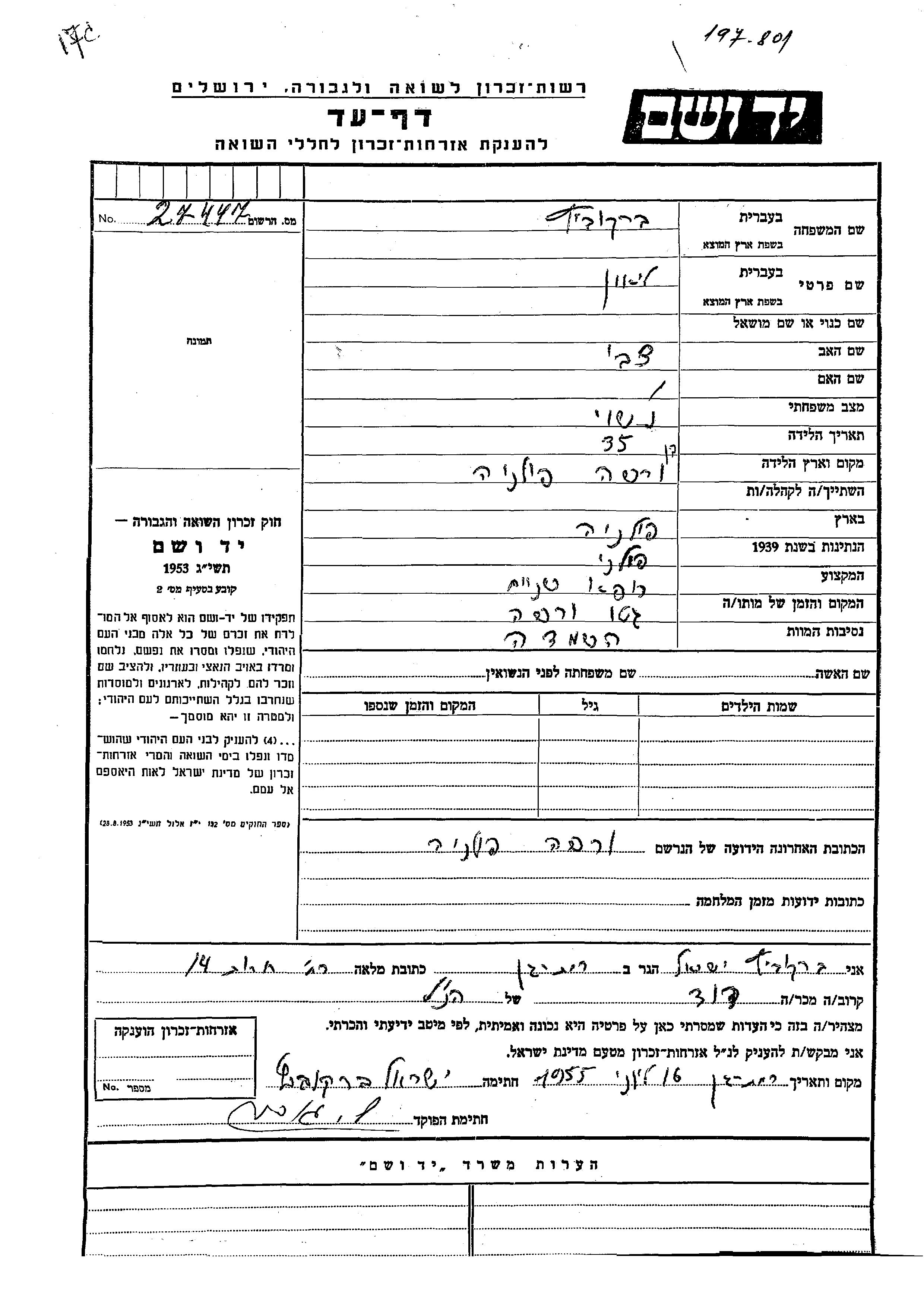 Яд Вашем - Листы свидетельских показаний Мемориального фонда